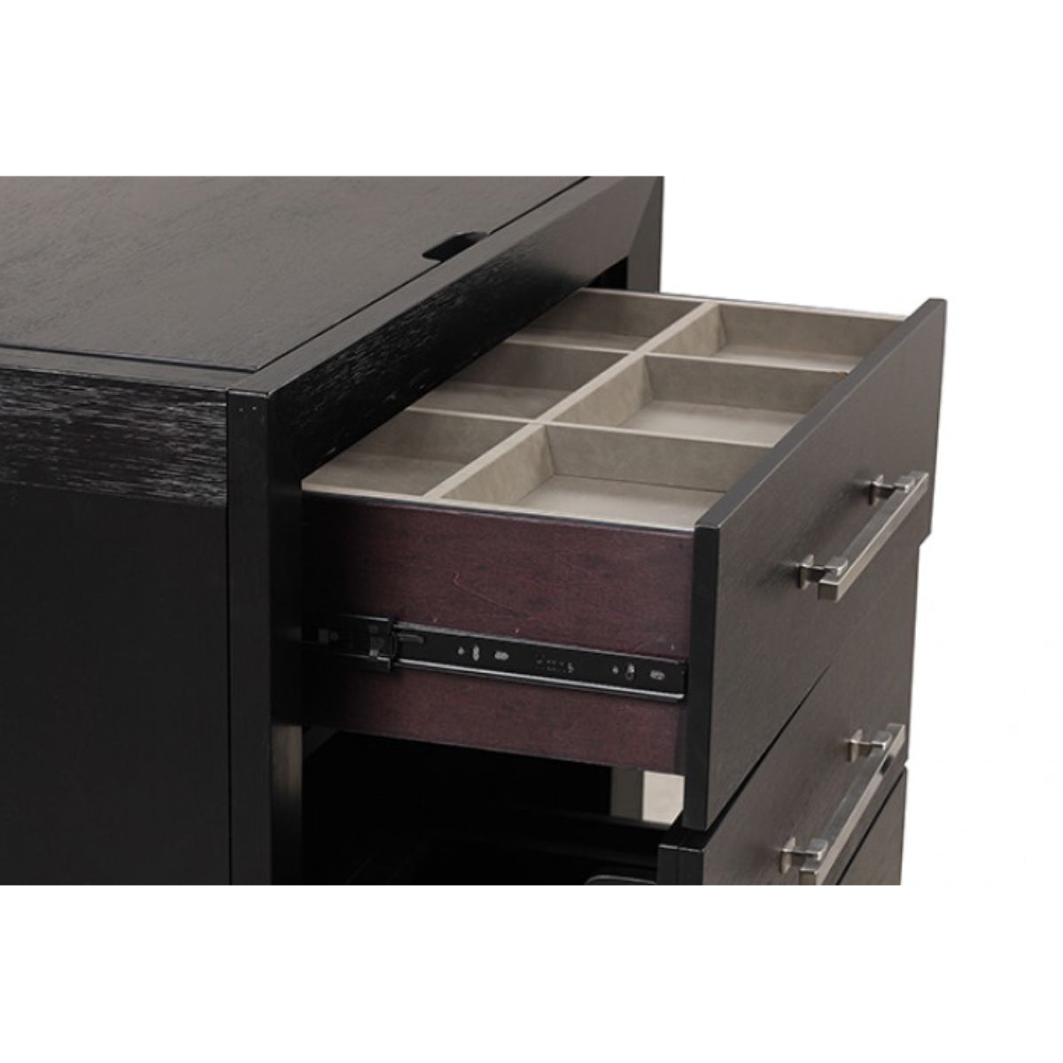 - The top jewelry compartment features seven color lighting options.