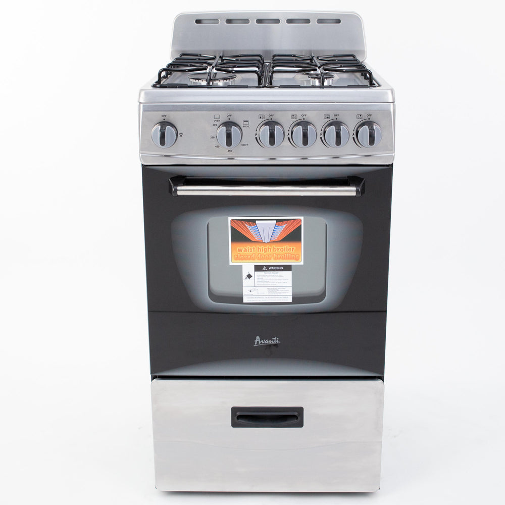 Avanti GR2013CSS 20" Freestanding Gas Range with 2.1 Cu. Ft Oven, Stainless Steel/Black