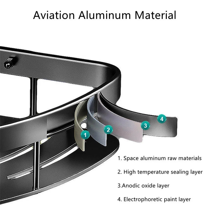 Bathroom Shelf Aluminum Alloy Shampoo Rack No Drill Corner Storage Organizer