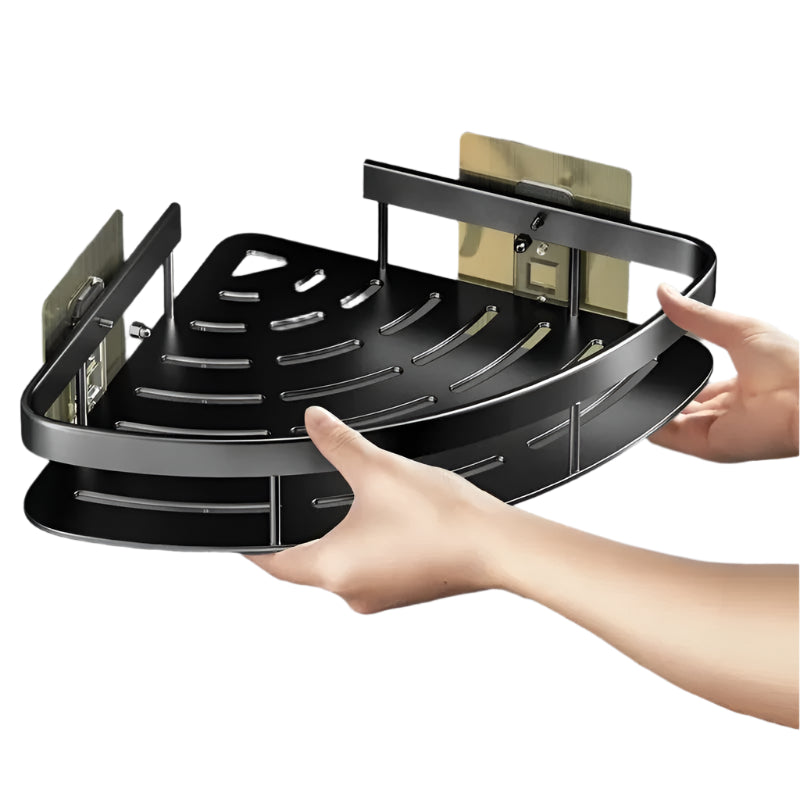 Introducing the Bathroom Shelf Aluminum Alloy Shampoo Rack Makeup Storage Organizer Shower Shelf Bathroom Accessories No Drill Wall Corner Shelf, your ultimate solution for a clutter-free bathroom! This innovative wall-mounted shelf is designed to maximize your space, providing a practical way to store your essential bathroom items without the hassle of drilling. Perfect for not just bathrooms, but also kitchens, RVs, living rooms, and bedrooms, it features a large storage capacity and a raised fence to keep your items safe and secure. The easy installation process allows you to enjoy an organized space immediately, making it ideal for anyone looking to enhance their home's functionality and style. Product Highlights. No-Drill Installation: Effortlessly mount the shelf using transparent non-marking adhesive, eliminating the need for tools or messy glue. Durable Aluminum Construction: Made from high-quality aluminum alloy, ensuring longevity and resistance to rust and corrosion. Space-Saving Design: Perfectly fits into corners, maximizing storage without taking up unnecessary space. Easy to Clean: The main body detaches easily from the wall for a thorough cleaning. Increased Weight Capacity: Holds more weight than standard shelves, making it suitable for a variety of bathroom essentials.