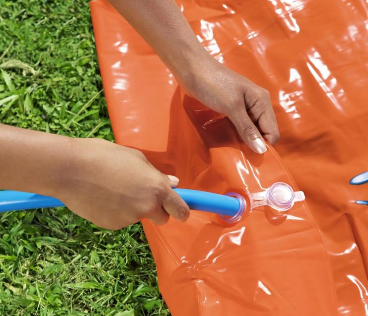 The Bestway H2OGO! Tsunami Splash Ramp 16' Triple Water Slide is the ultimate addition to your summer fun collection focused on Swimming Pools, Pool Floats & Loungers. Designed for thrill-seekers, this impressive 16 ft. water slide features a unique Tsunami Splash Ramp that generates exhilarating waves of water from underneath. This innovative design not only ensures a smooth and speedy ride but also provides a soft landing at the end, making it perfect for kids of all ages. With the built-in SplashBoost Sprinkler technology, water is distributed perfectly for a consistent flow, making each ride a refreshing adventure. Easy to set up and take down, this water slide guarantees hours of excitement and laughter for your family and friends. Get ready for wave after wave of summer enjoyment as kids line up to race down this incredible slide!