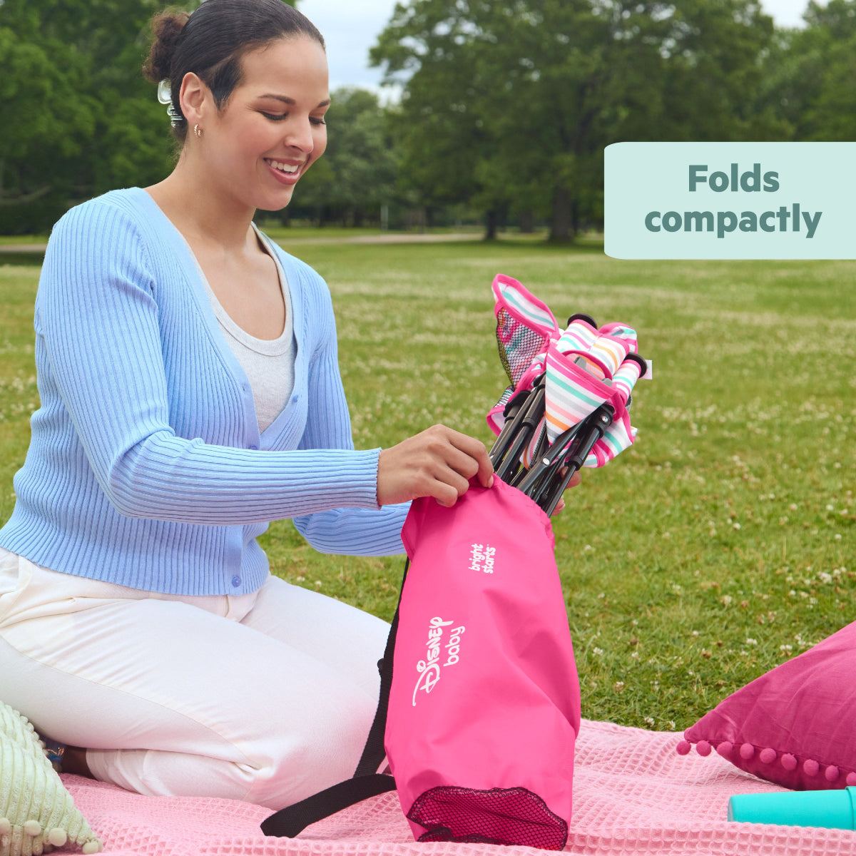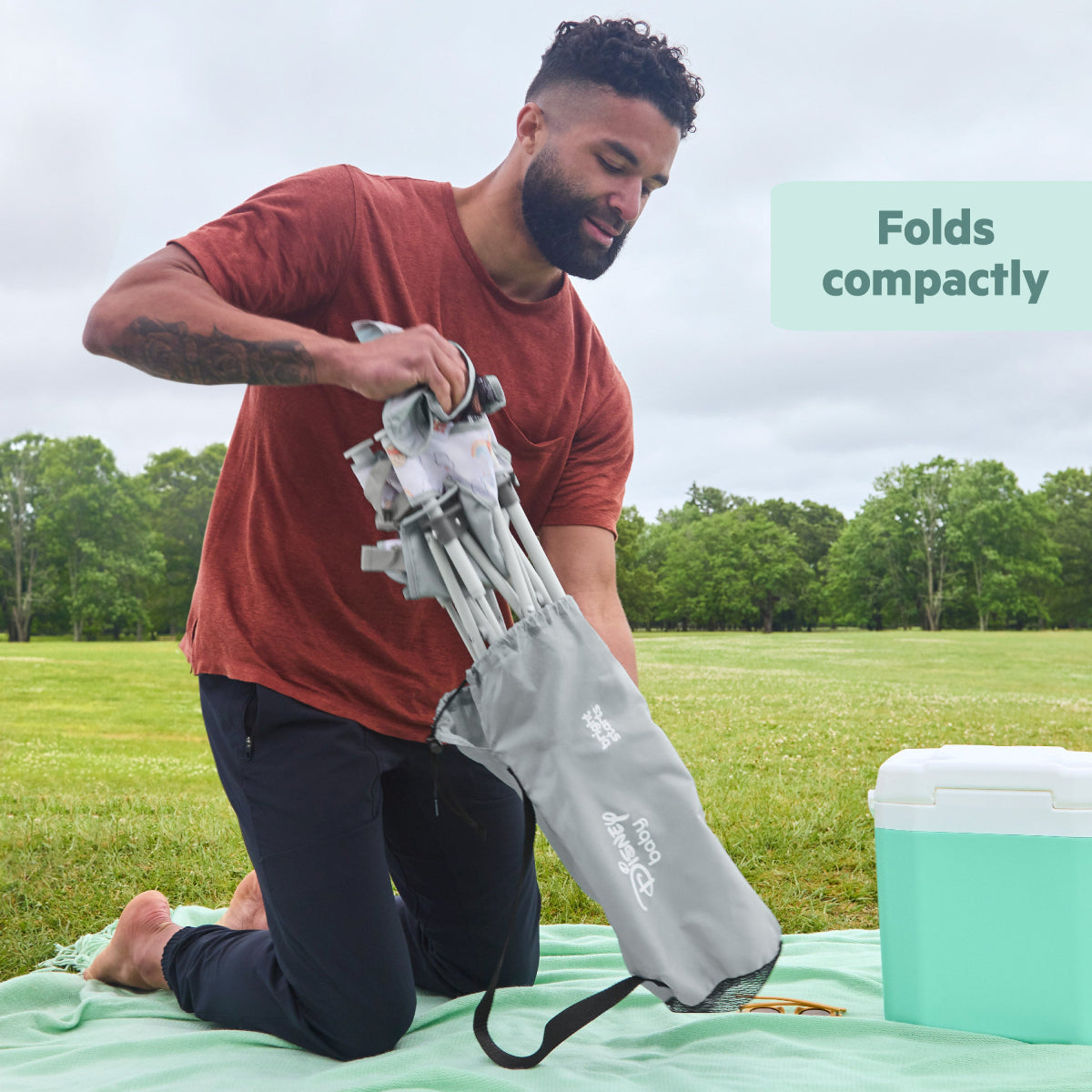 The original Pop ‘N Sit is a versatile travel booster seat that grows with your child from baby to toddler. It features three modes- a floor seat, a feeding seat with a removable tray, and a toddler booster. Securely attach it to an adult chair for mealtime or use it on the floor for playtime. It includes a rear storage pocket, a dishwasher-safe tray, and a machine-washable seat pad. Lightweight and compact, it folds easily and comes with a carrying bag for convenience.