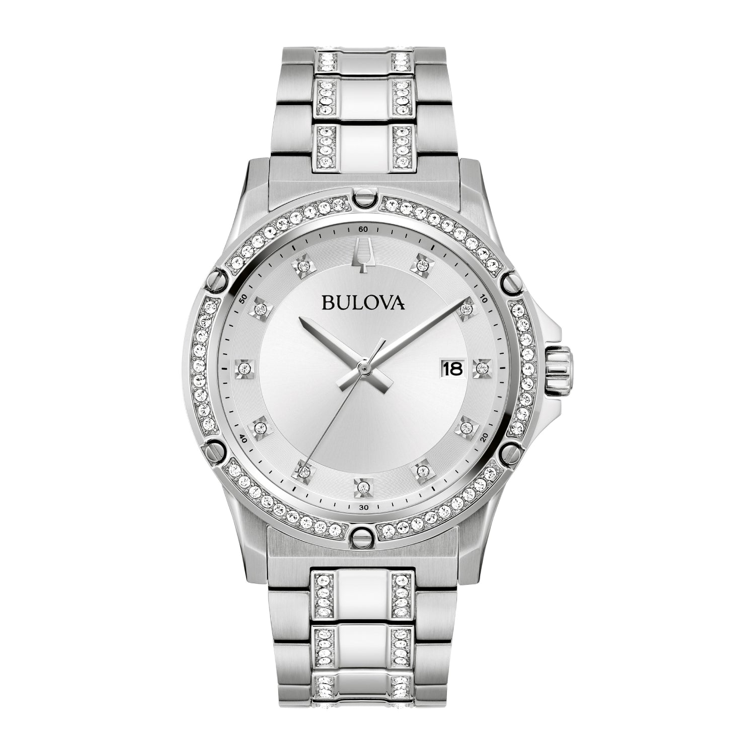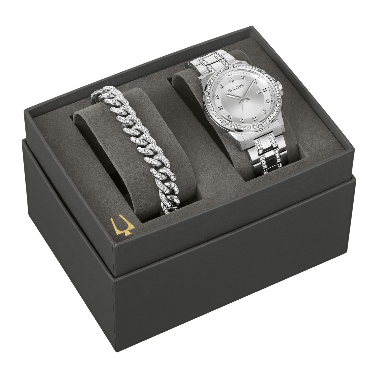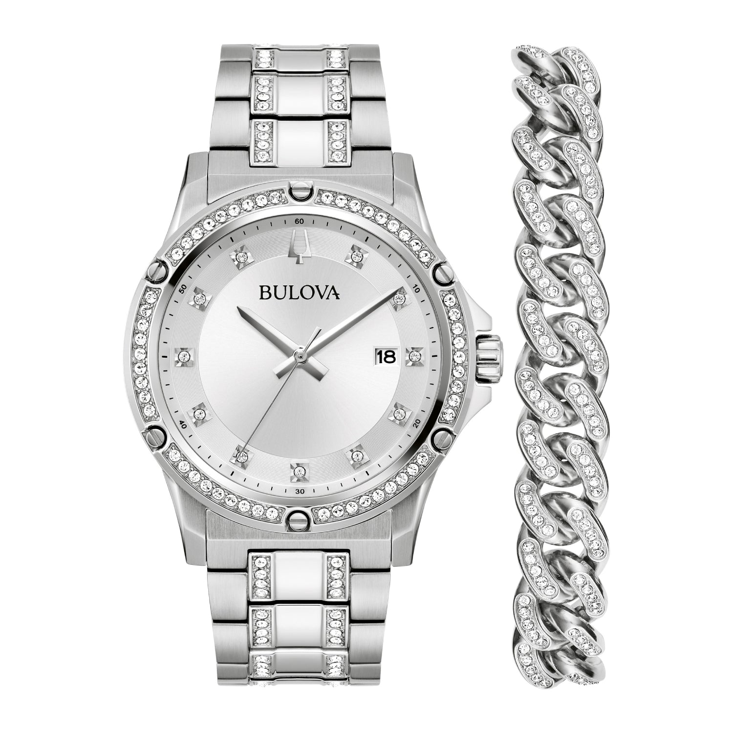 Bulova Crystal Men's 42mm Watch & Bracelet Box Set (2-Piece) - Silver