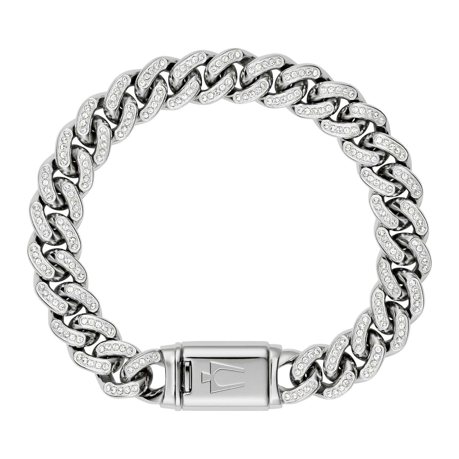 Introducing the Bulova Crystal Men's 42mm Watch & Bracelet Box Set (2-Piece) - Silver, a stunning addition to the Bulova men's collection that radiates elegance and sophistication. Crafted from premium silver-tone stainless steel, this exquisite box set features a breathtaking watch adorned with 118 sparkling crystals. The dramatic faceting combined with brushed and polished finishes creates a captivating design that is sure to turn heads. The lively sunray dial, featuring a silver-tone handset and 11 crystal hour markers, ensures that you always stay on time while making a statement. Accompanying the watch is a bold bracelet, intricately designed with 260 crystals in a full pave Cuban link style, secured with a reliable tuning fork clasp. With a precise quartz movement, this set not only represents style but also exceptional accuracy, making it a perfect choice for the modern man who values both form and function.