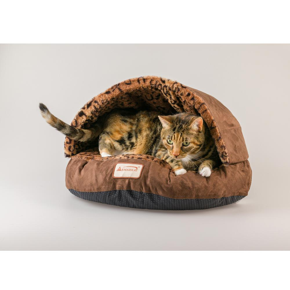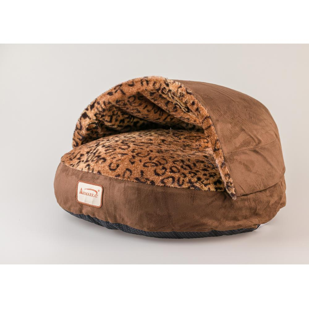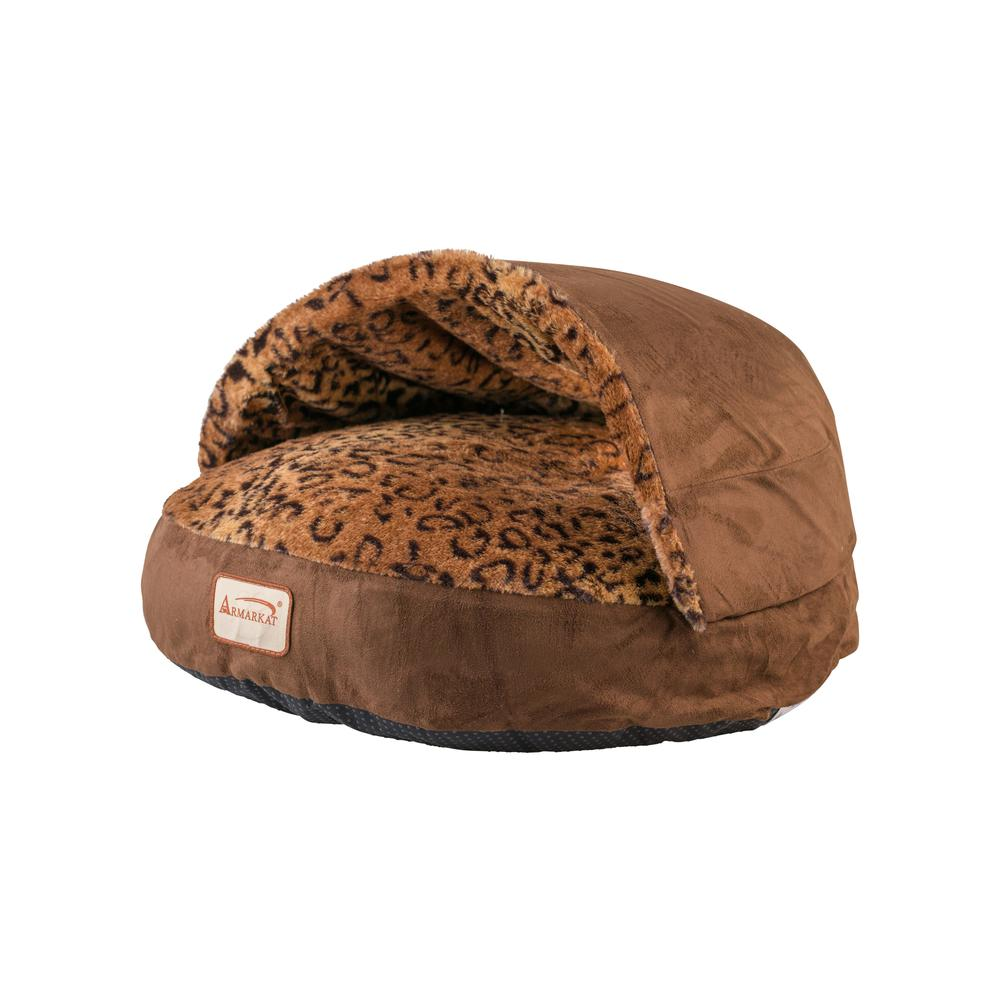 Your kitty or extra small doggie will have a roaring good time with Armarkat’s Model C31HKF/BW pet bed. Your pet will love to slumber on its buttery faux suede and silky soft plush. It is filled with extra-thick, 100% polyfill for your pet’s comfort. The mocha and leopard print bed has a machine washable cover and a waterproof and skid-free base.