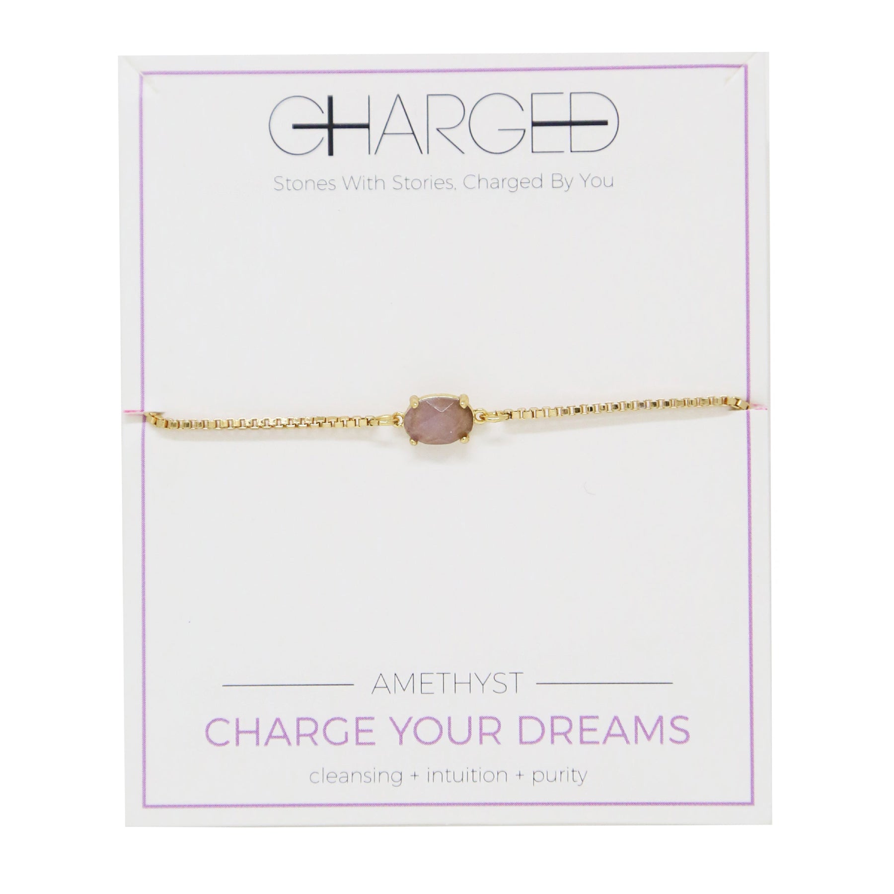 Charged Women's Amethyst & Gold Adjustable Chain Bracelet