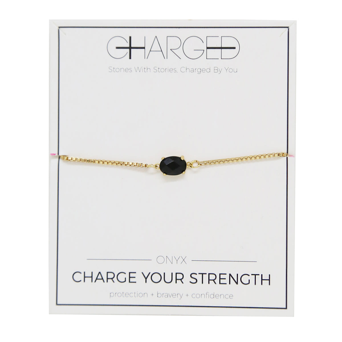 Introducing the Charged Women's Onyx & Gold Adjustable Chain Bracelet, a stunning piece from our Fashion Jewelry For Women collection. This exquisite bracelet features a unique combination of onyx and gold, designed to not only enhance your style but also empower your spirit. Onyx is renowned for its strength-giving properties, providing support for intuitive guidance and protection against negative thoughts. This bracelet allows you to charge the stones with your energy, personalizing it with your intentions while amplifying their natural benefits. Embrace your true self and make a fashion statement with this beautiful and meaningful accessory.