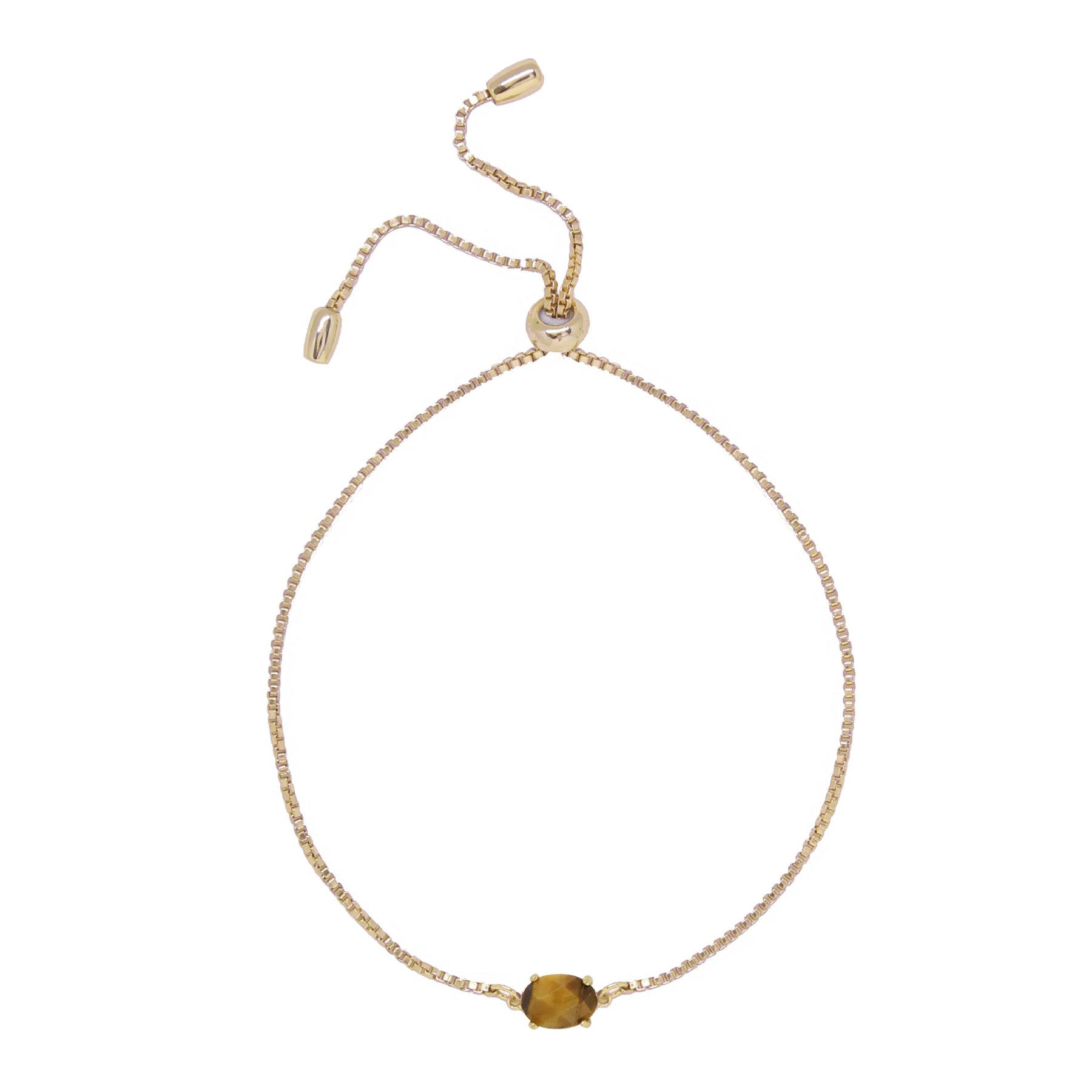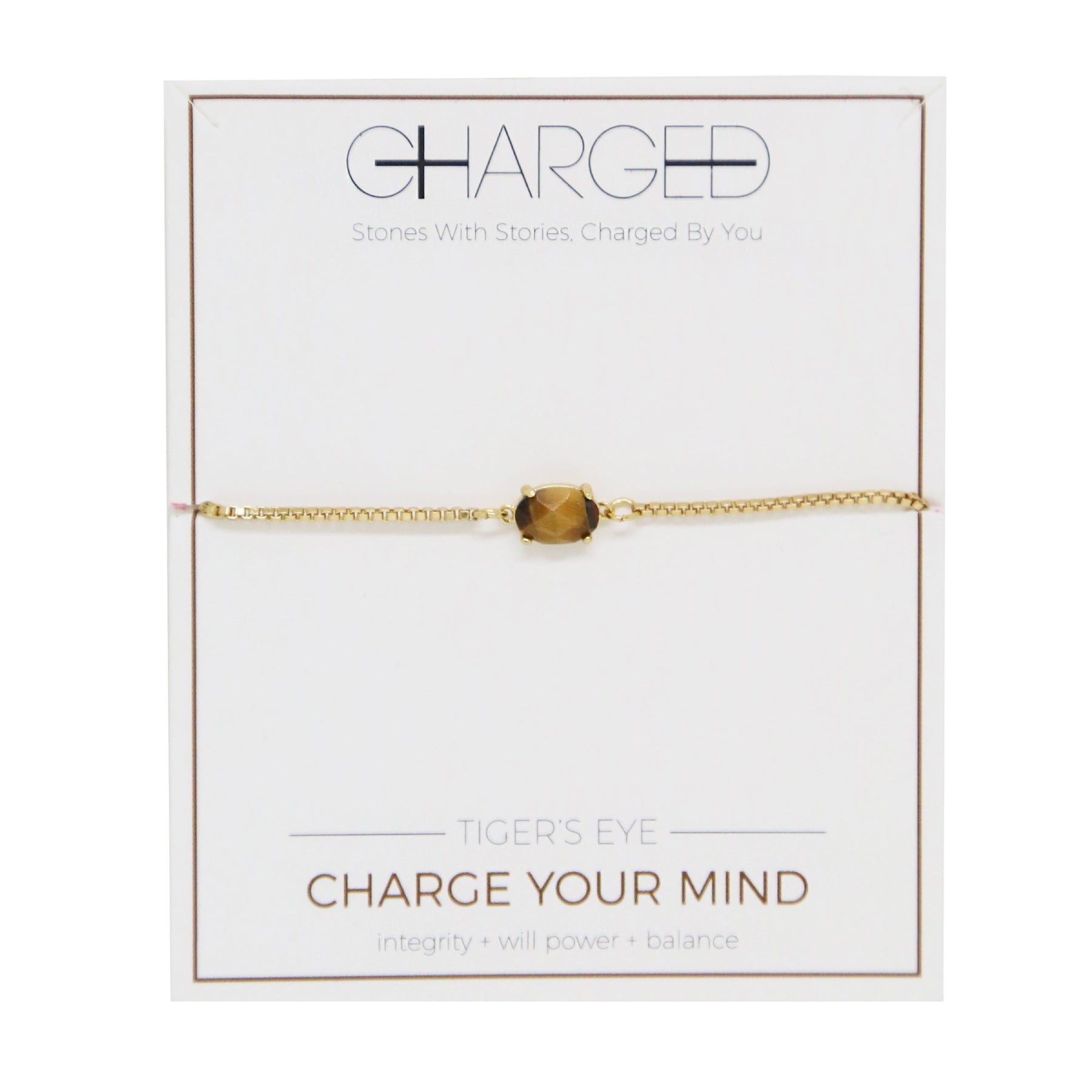Charged Women's Tiger's Eye & Gold Adjustable Chain Bracelet