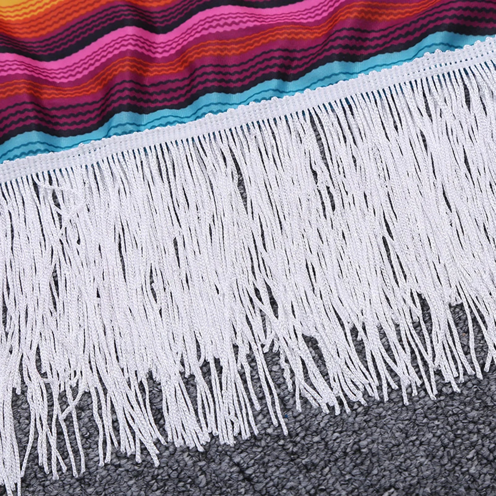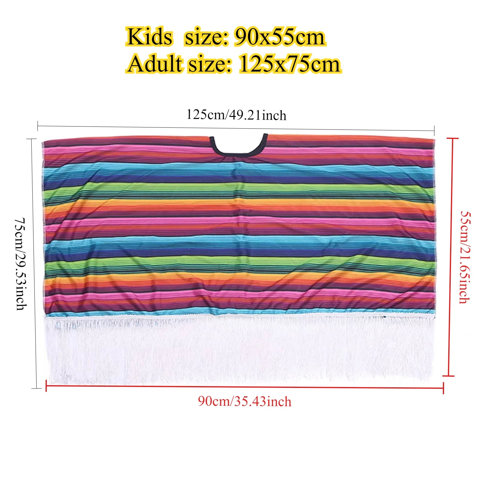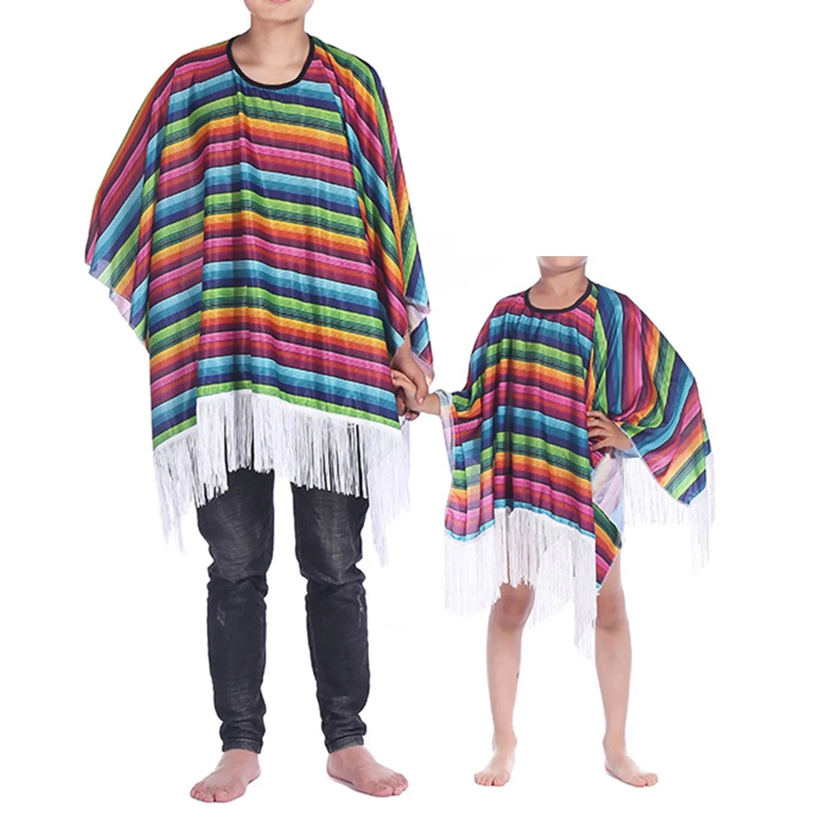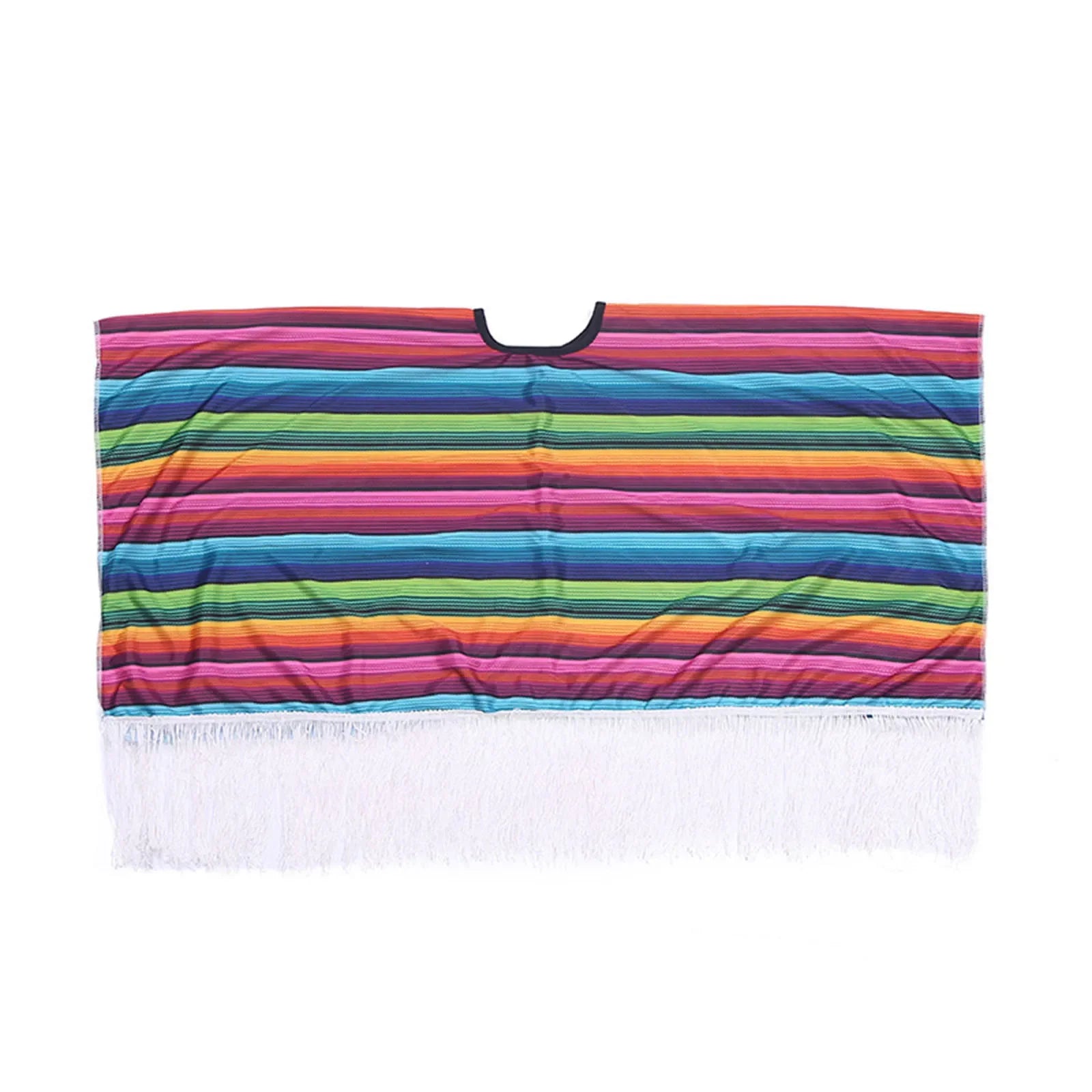 - Vibrant Design: Colorful rainbow-striped cloak with stylish tassels.