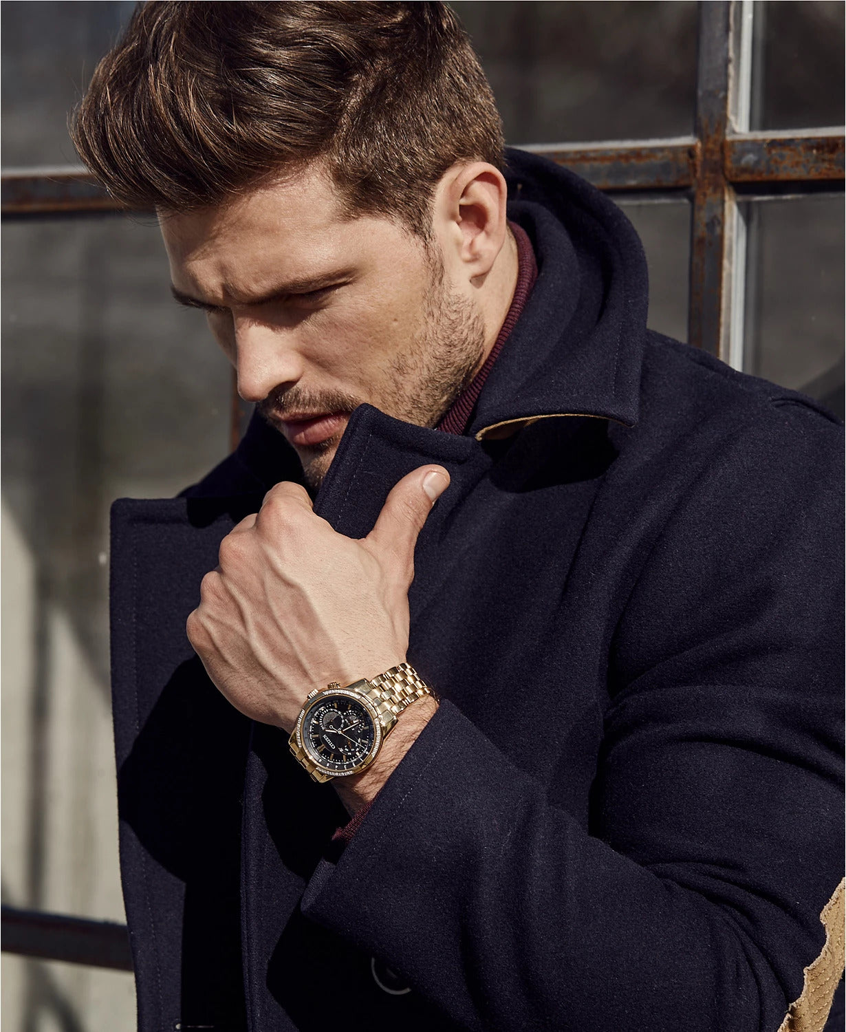 - Multifunctional display with date and chronograph features.