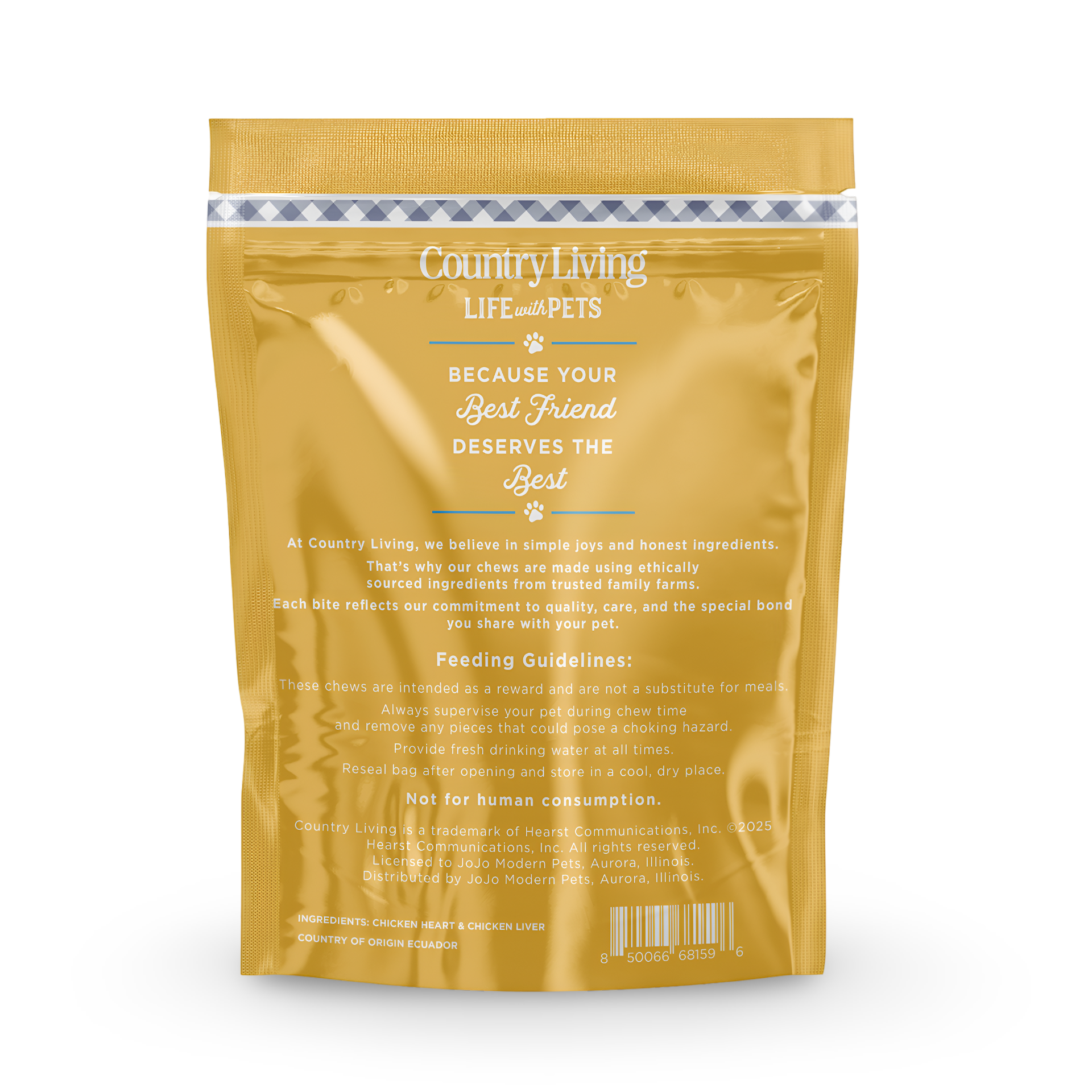 Treat your dog to the simple, satisfying taste of Country Living Dehydrated Chicken Hearts & Livers — because when it comes to treats, nature knows best.