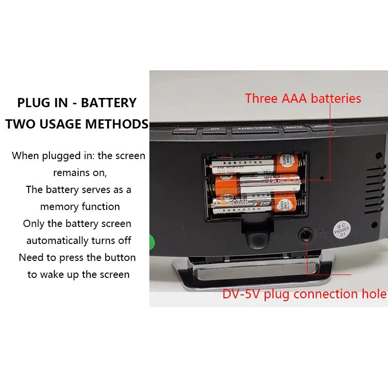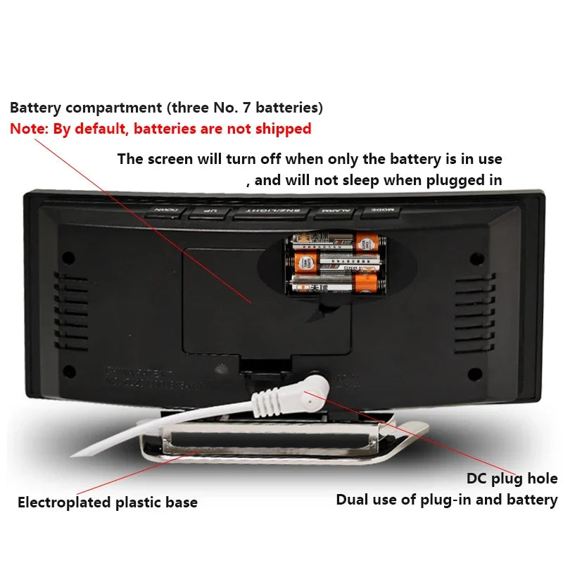 Experience peace of mind with its plug-in battery function, ensuring your clock remains operational even during power outages. The snooze function is an added benefit, allowing you to indulge in a few extra minutes of sleep without the stress of oversleeping. Crafted from durable high-quality plastic, this clock guarantees longevity and value for money. Elevate your bedroom with the Creative Curved Electronic Clock today!