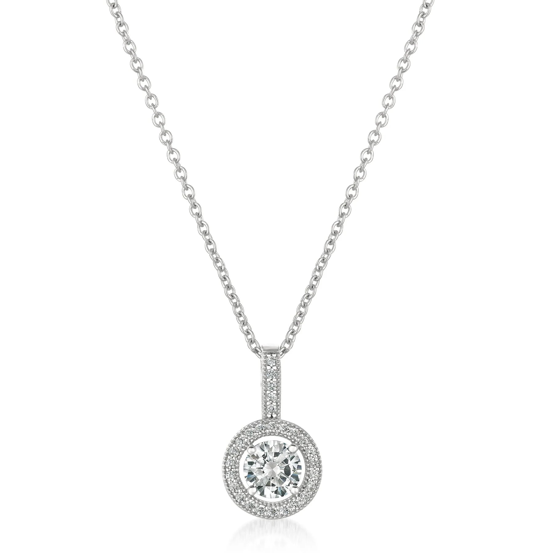 Crislu Women's Brilliant Cut Halo Pendant Necklace in Pure Platinum Plated 925 Sterling Silver