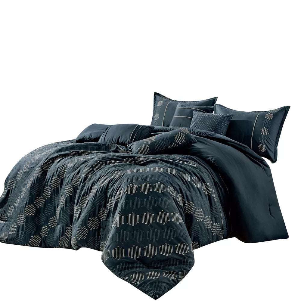 Esca Eulanda Luxury Queen Size 7-Piece Comforter Set - Blue