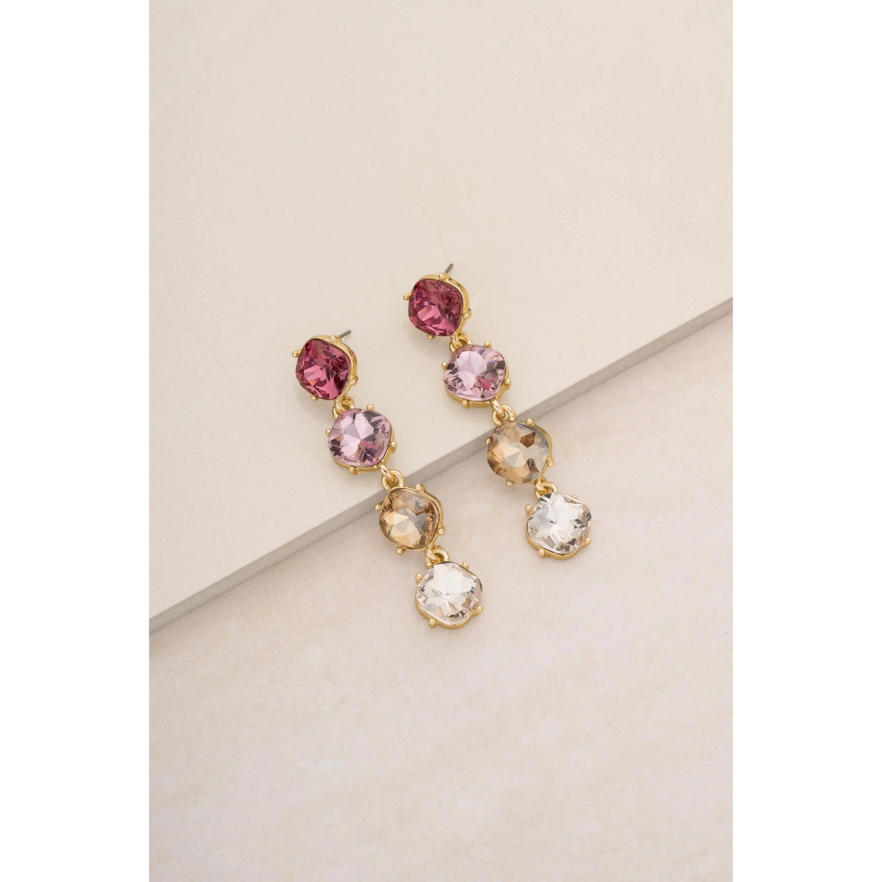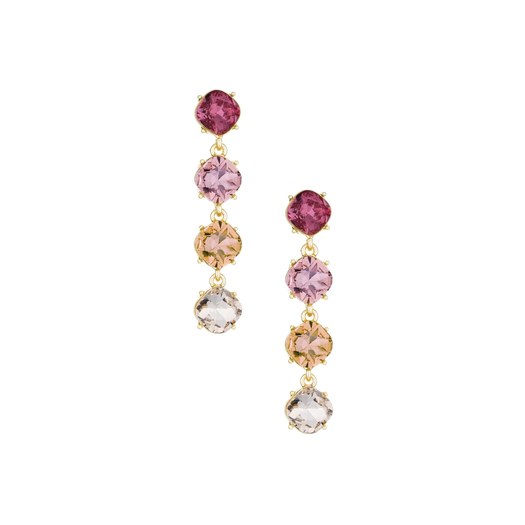 Ettika Four The Money Pink Mixed Crystal Women's 18k Gold Plated Earrings