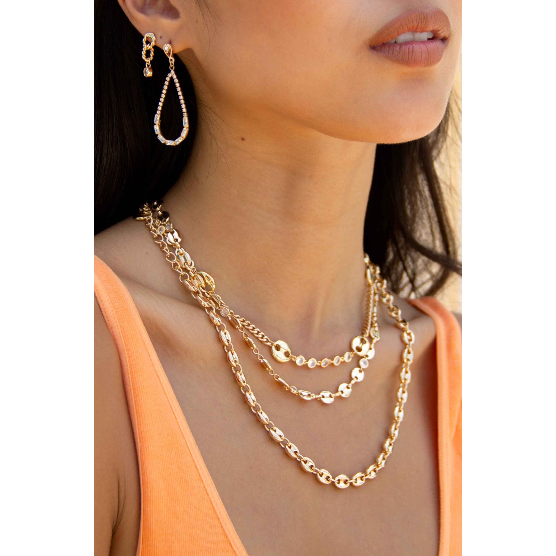 Indulge in the timeless allure of the Ettika Women's Angels City Drop Crystal 18k Gold Plated Earrings. These exquisite earrings feature an angel-inspired design, symbolizing grace and beauty. Crafted with 18k gold plating, they offer both durability and luxurious shine. The glistening crystals set within this piece catch the light beautifully, reflecting a captivating sparkle with every movement, making them the perfect accessory for any occasion. Whether you are dressing up for a night out or adding flair to your everyday outfit, these earrings will elevate your style while making a striking statement.