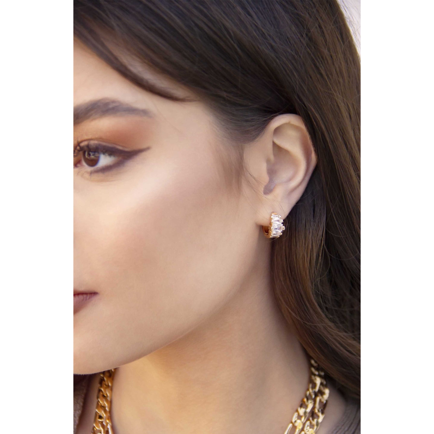 Ettika Women's Diamond Shine Crystal 18k Gold Plated Mini Hoop Earrings