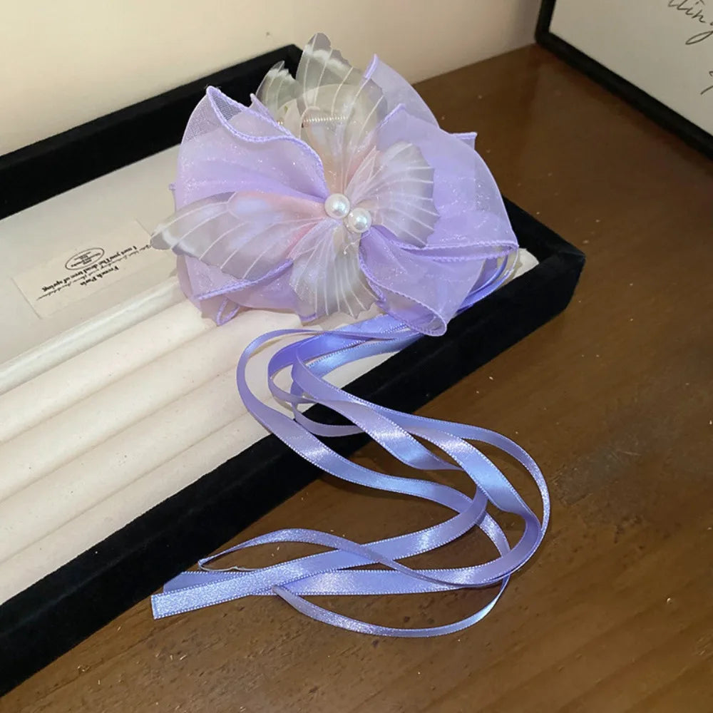 Fashion Mesh Butterfly Hair Claw Ribbon Bowknot Shark Clip Women