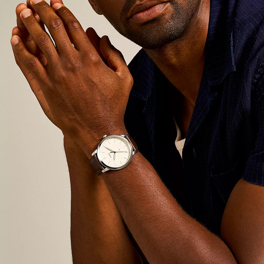 Fossil The Minimalist 3H Men's 44mm Brown Strap Watch - Beige Dial