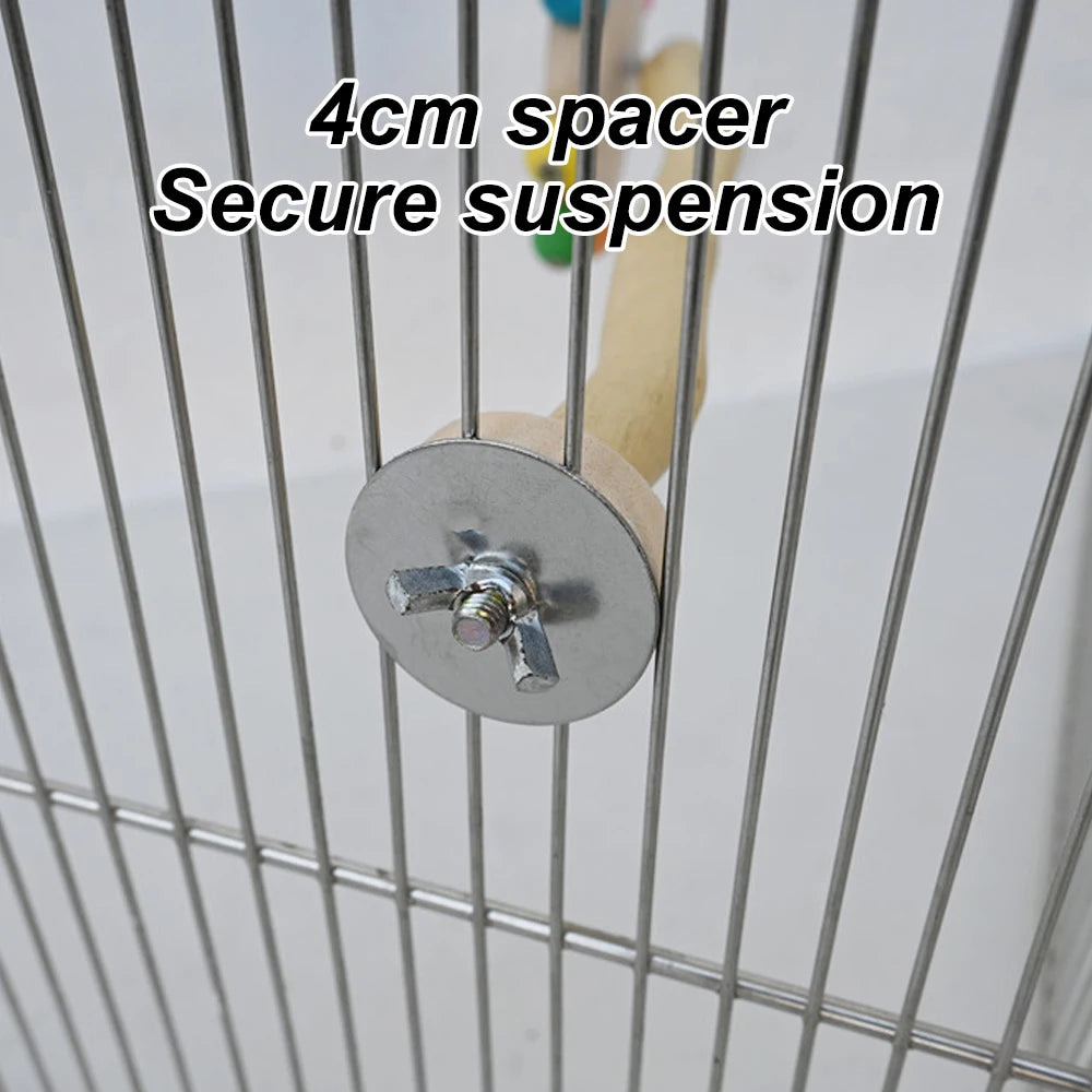 Funny Perch Toy with Rotating Balls Wood Interactive Bird Stand Colorful Parrot Foraging Toy Rotating Windmill Toy for Lovebirds