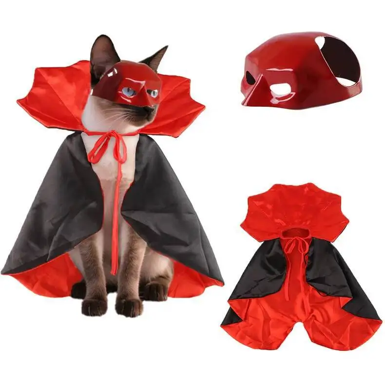 Halloween Vampire Pet Costumes Couture Set with Mask Cape for Cats Dog Halloween Festival Set Dress Up Pet Parties Cloak Clothes