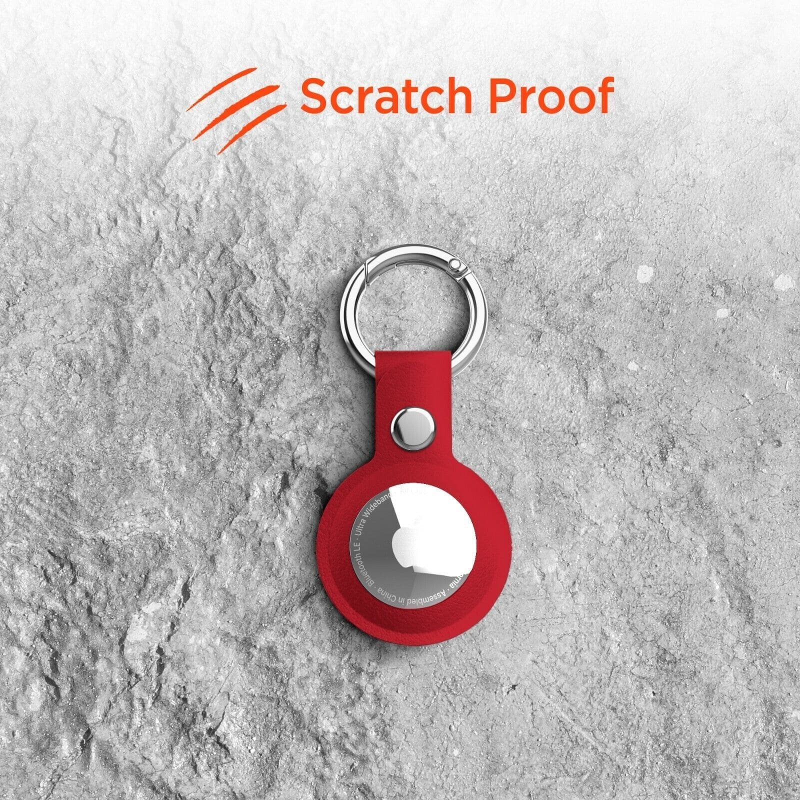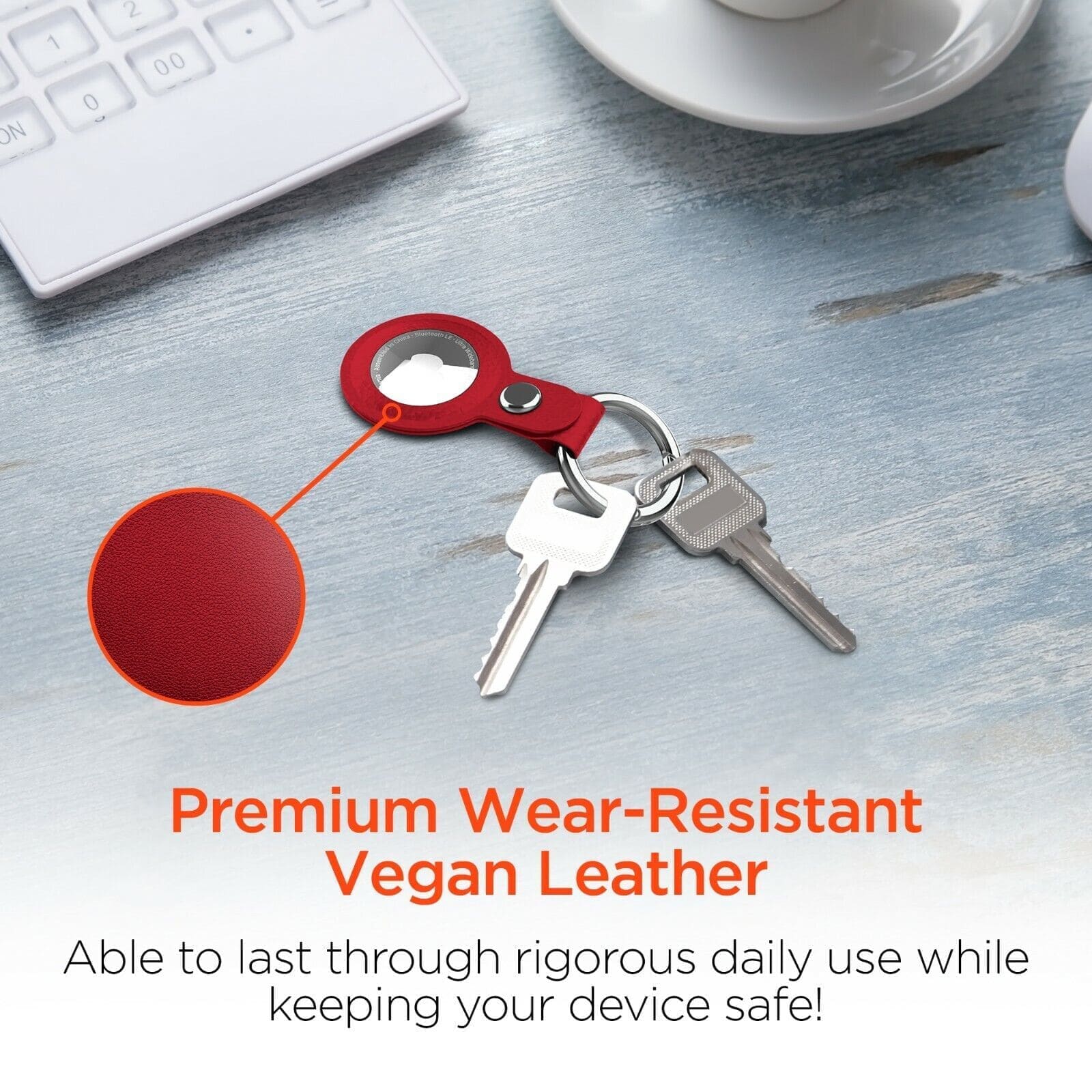 - Stylish red vegan leather design that enhances your AirTag's appearance.