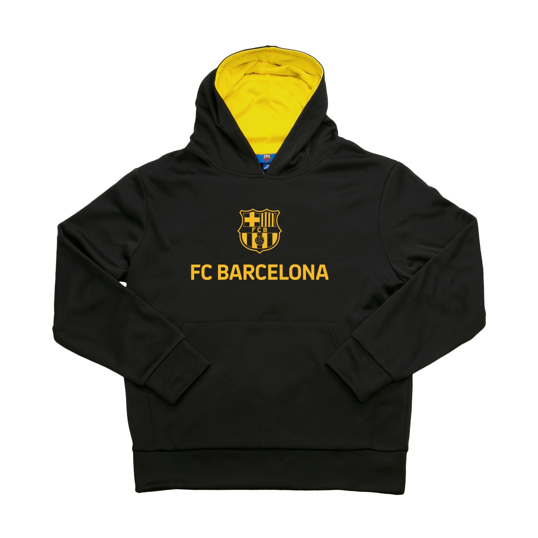 - Stylish black pullover hoodie featuring FC Barcelona branding