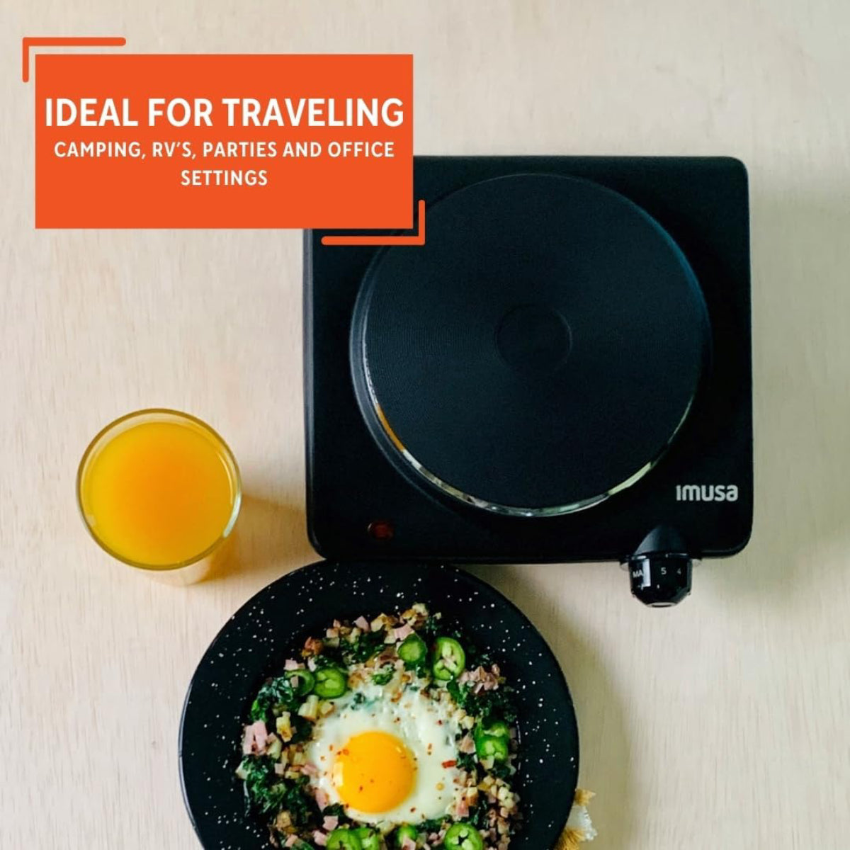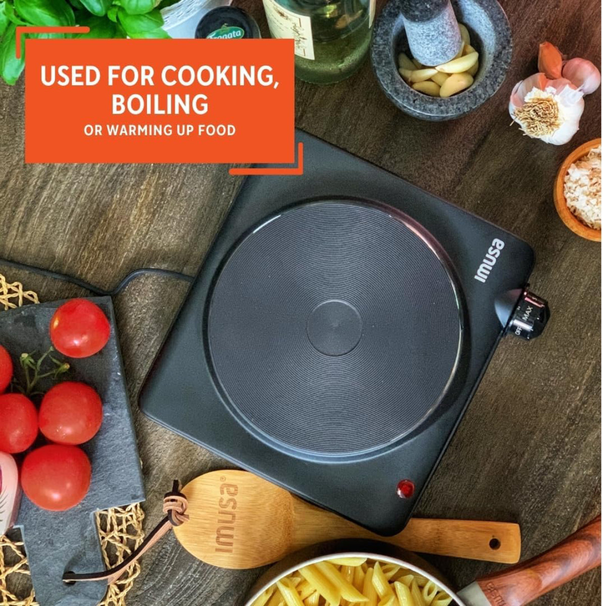 The Imusa GAU/80315US Single Electric Hot Plate - Black is your ideal kitchen companion for all your cooking needs, whether at home or on the go. This compact hot plate features a sleek matte black design, which not only lends a modern touch to your kitchen but also allows for easy portability. Its cool-touch construction ensures safety during use, while the rubber feet provide stability on any surface. With adjustable temperature control and a power indicator light, this hot plate makes cooking, boiling, or warming food a breeze. Perfect for traveling, outdoor cooking, camping, RV adventures, parties, or even office use, the IMUSA Single Hot Plate is versatile and convenient, designed to simplify your culinary tasks. You can trust this reliable appliance to enhance your cooking experience while being stylish and efficient.