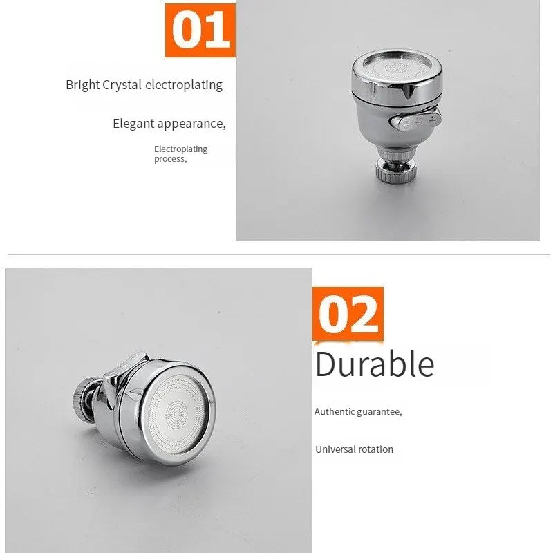Introducing the Kitchen Charge Faucet Splash Proof Extender Household Shower Filter Universal Faucet Can Rotate The Water Outlet Charge Shower, the ultimate solution for elevating your kitchen experience. This innovative faucet extender offers a seamless blend of functionality and convenience, allowing you to enjoy versatile water flow options tailored to your cleaning needs. Constructed from premium ABS material, this product ensures durability while promoting water conservation. With three adjustable modes"βpulse, shower + pulse, and standard shower"βyou can effortlessly switch settings for optimal performance. The 360-degree swivel feature allows for easy cleaning at various angles, making this a must-have tool for every household. Not only does this extender enhance your kitchen's functionality, but it also saves on water usage by more than 50%, contributing to both environmental sustainability and reducing your water bills. Experience a new level of efficiency in your daily chores with this essential kitchen gadget. Product Highlights. High-Quality Material: Made from sturdy ABS for long-lasting use. Three Functional Modes: Enjoy pulse, shower + pulse, and shower modes for versatile usage. Water Pressure Adjustment: Tailor the water pressure to your specific needs. Eco-Friendly: Reduces water usage by more than 50%, saving both water and energy costs. Easy Installation: Compatible with 99% of faucet types, making setup a breeze. Silent Operation: Features silent technology for a peaceful kitchen environment.