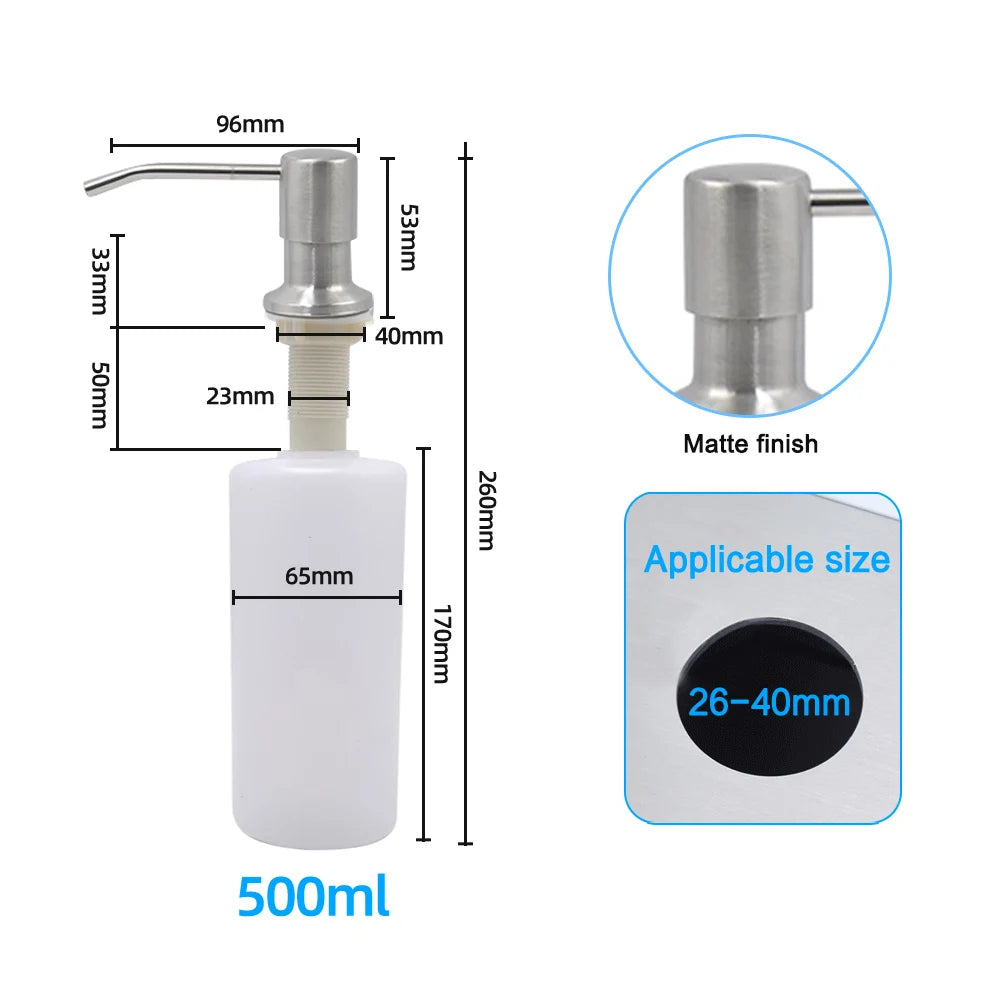 Stainless Steel Kitchen Sink Liquid Soap Dispenser Pump 500ML