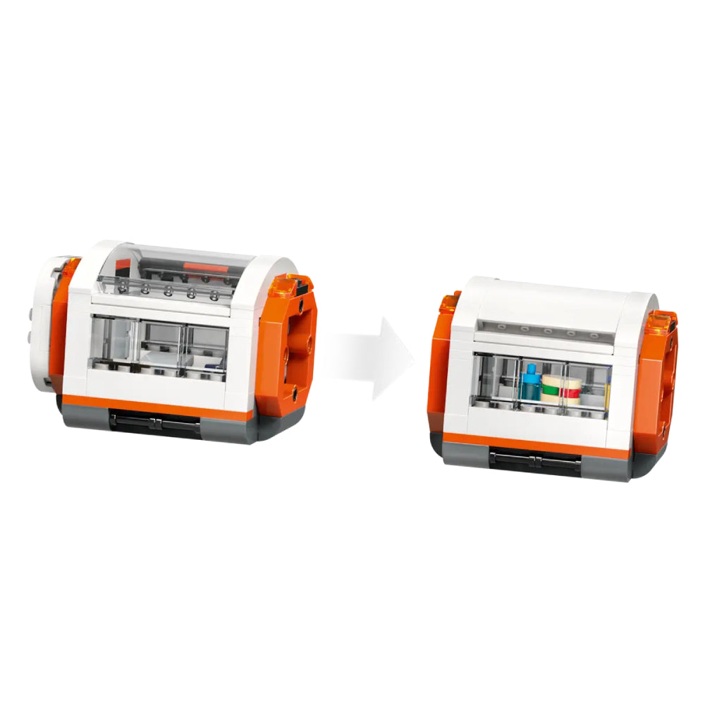 - Includes multiple detailed room pods: science lab, workshop, kitchen, and biodome.