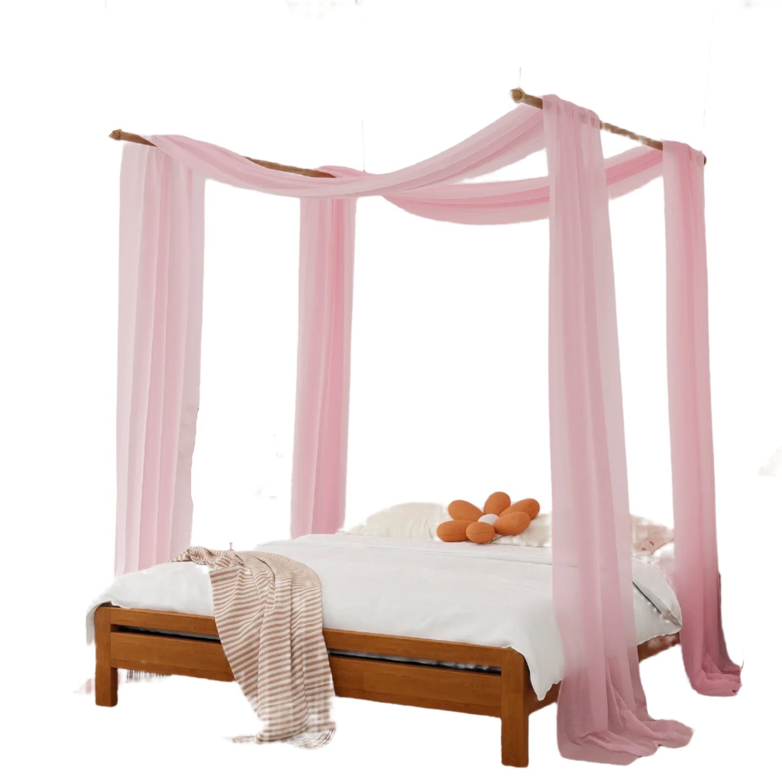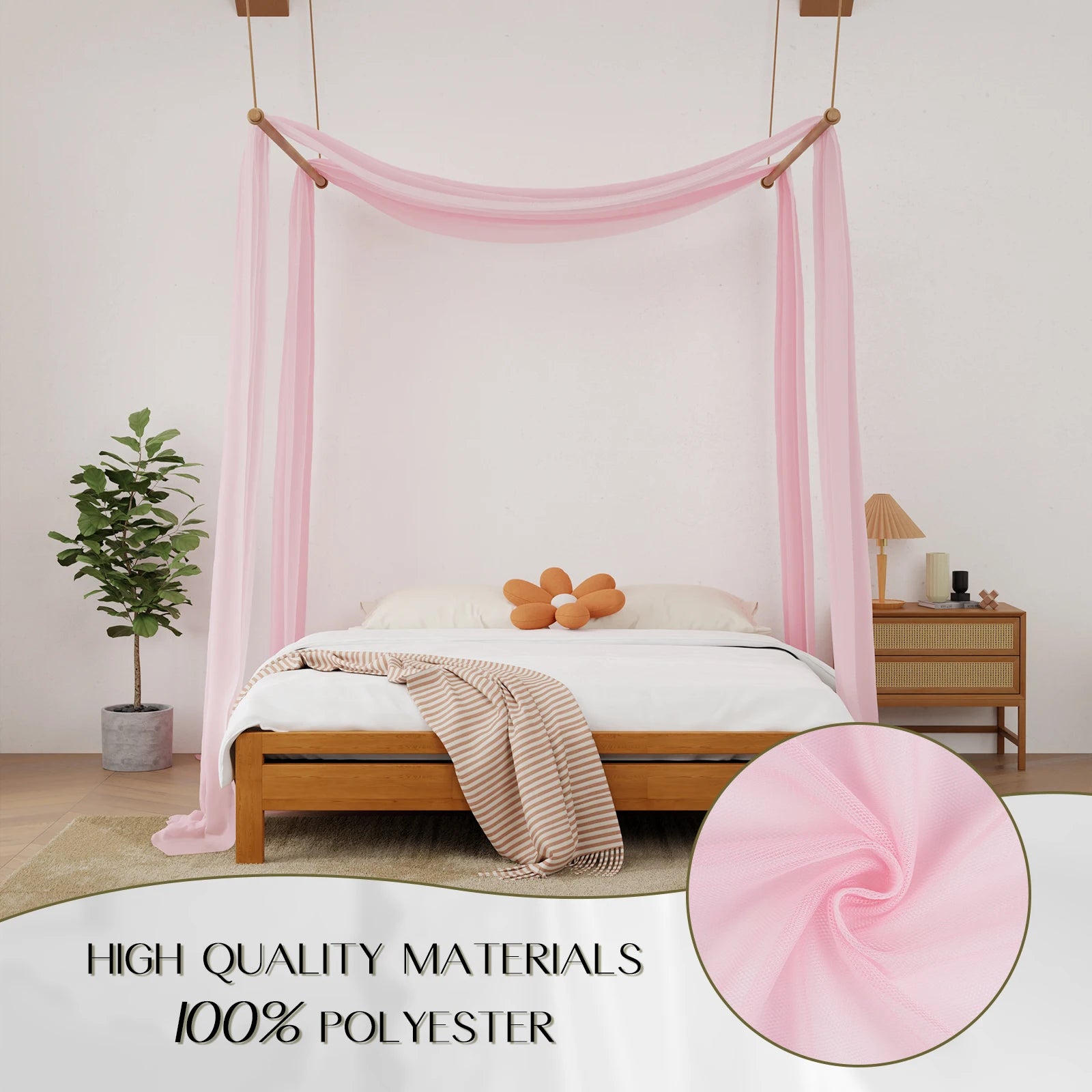 Installation is a breeze—no special tools or experience are required! Available in three sizes to suit most bed types, this canopy scarf can be styled as a backdrop for special occasions or simply hung to create a dreamy atmosphere. Enjoy the soft, billowing fabric as sunlight streams through, illuminating your space with a warm glow. Elevate your bedroom decor and experience the comfort and charm of our Luxury Pink Sheer Scarf Bed Canopy.