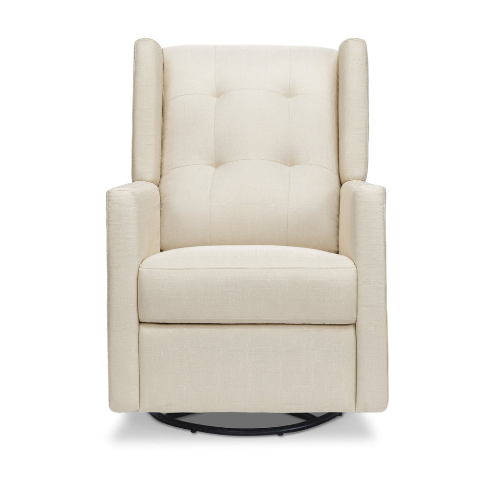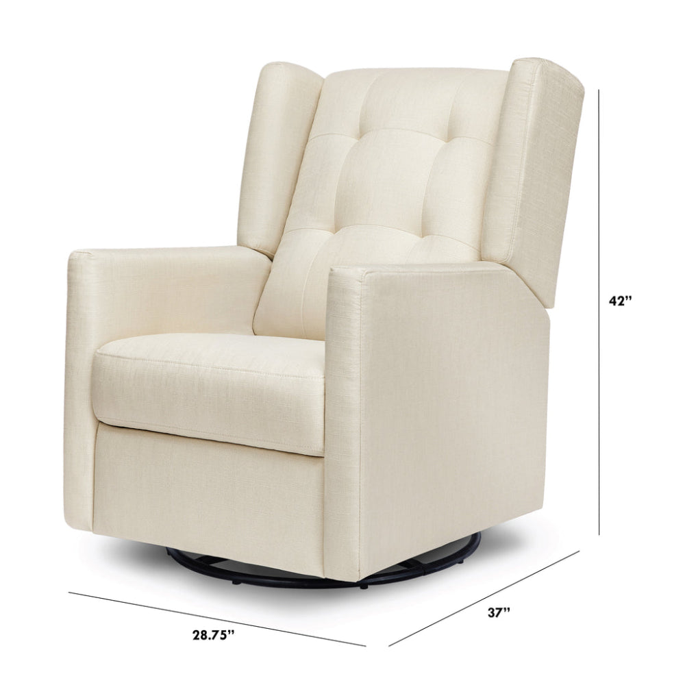 The Maddox 42" Recliner and Swivel Glider by DaVinci has been thoughtfully designed to enhance feeding time with unmatched comfort and ease. This chair is perfect for moms and dads, allowing them to relax in a durable seat that glides, swivels, and reclines effortlessly into a peaceful resting position. With its clean lines, tufted design, and elegant wingback style, this timeless recliner seamlessly transitions into your living room for years to come. Its multi-functional capabilities not only provide comfort but also elevate the aesthetics of any space, making it an essential addition to your home.