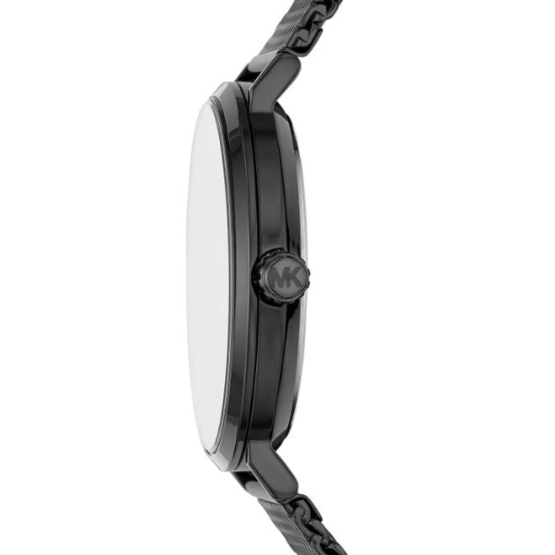Introducing the Men's Auden Three-Hand Gunmetal Stainless Steel Mesh Watch 42mm MK7152, a perfect blend of elegance and functionality. This sophisticated timepiece features a striking black dial that complements its sleek gunmetal finish. The black stick indexes provide a modern touch, while the three-hand movement ensures precision in timekeeping. The durable black stainless steel mesh bracelet not only offers comfort but also enhances the watch's contemporary aesthetic. Designed for the modern man, this watch is an essential accessory for both casual and formal occasions.