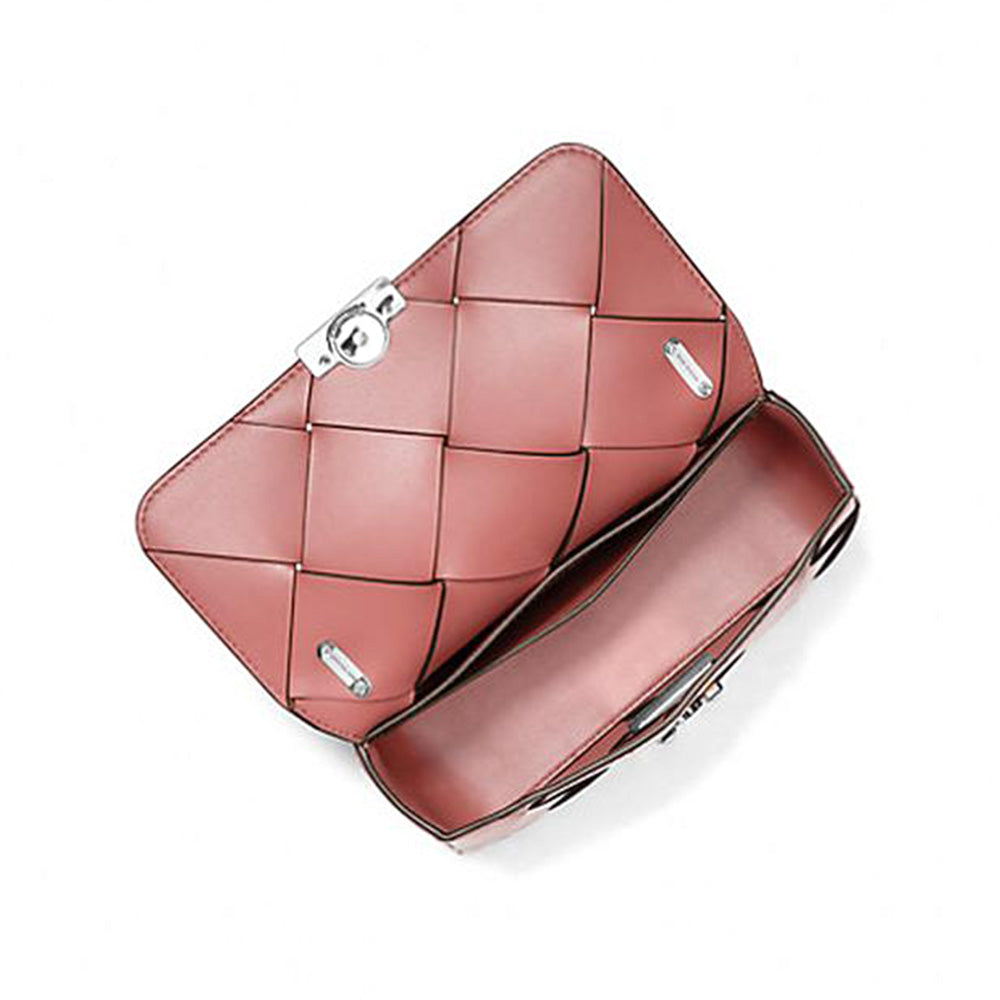 Rendered in woven leather with eye-catching chain-link hardware, the Tribeca shoulder bag defines downtown chic. Its lined interior offers just enough space for your phone, wallet, and essentials, while the sleek silhouette transitions effortlessly from day to night. With a convertible strap design, this bag offers versatile styling wear it on the shoulder or crossbody for hands-free ease.