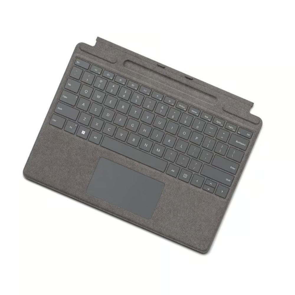 Enhance your productivity with the Microsoft Surface Pro Signature Keyboard for Pro X, Pro 8 and Pro 9 - Platinum. This keyboard not only elevates your Surface experience but also transforms your tablet into a versatile laptop-like device. Crafted from luxurious Alcantara, it features a spacious glass trackpad that allows for smooth navigation. Designed specifically for the Surface Pro 9, 8, and X, this keyboard is all about premium quality and comfort, ensuring that you can work efficiently without compromising on style. Enjoy the perfect combination of functionality and elegance, making it the ideal accessory for professionals and students alike.