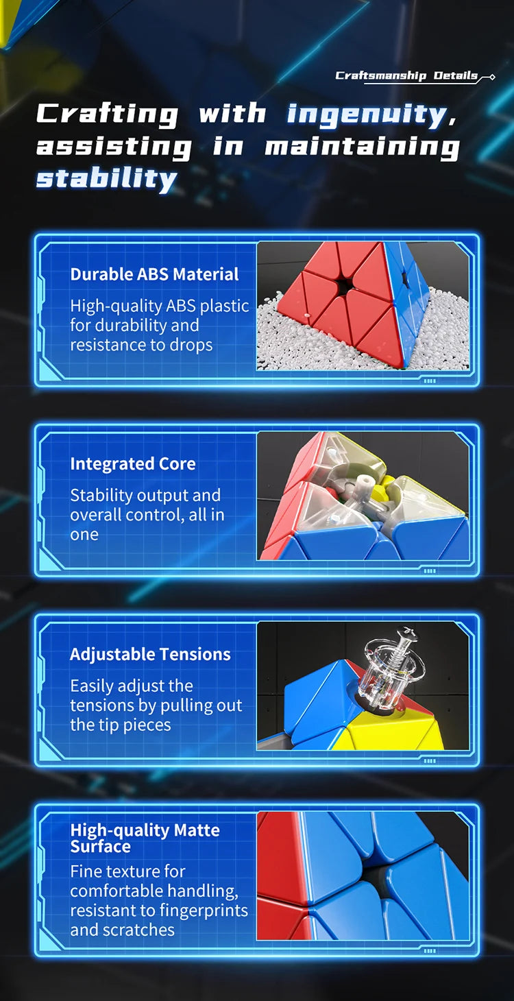 The MOYU Meilong M Magnetic Magic Cube 3X3 2X2 Pyraminx Speedcube is an exceptional puzzle cube designed for enthusiasts of all skill levels. Crafted with precision, this set includes three distinct configurations: the classic 3x3, the compact 2x2, and the intriguing Pyraminx. Each cube features advanced magnetic technology, providing enhanced stability and speed, making it perfect for competitions or casual play. Whether you're looking to improve your solving time or simply enjoy the satisfaction of mastering puzzles, this speed cube set is an excellent choice.