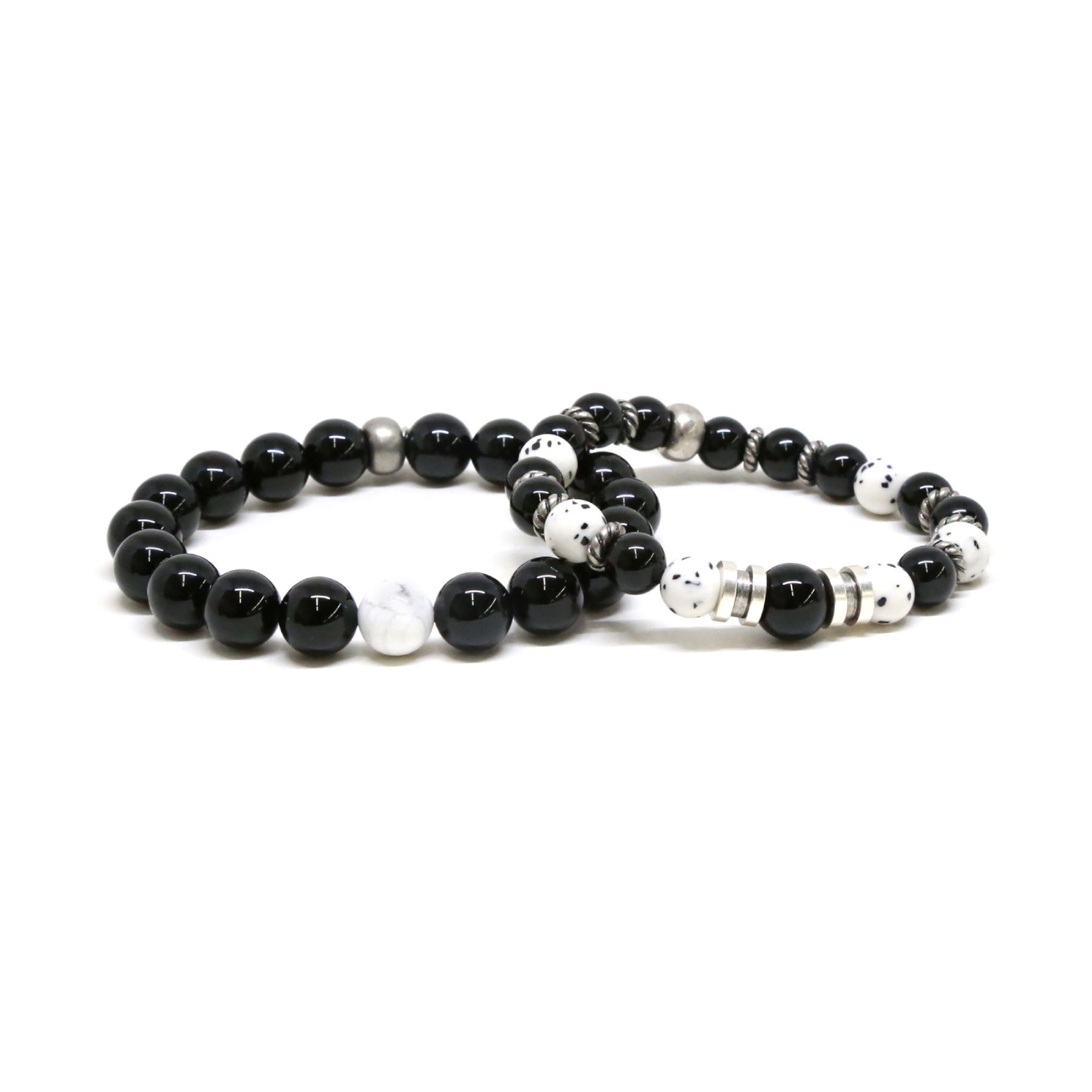 Introducing the Mr. Ettika Men's Onyx and Howlite Beaded Elastic Bracelet (Set of 2), a perfect blend of elegance and versatility in the collection of Fashion Jewelry For Women. These stylish bracelets are designed to elevate any outfit, whether it's for a casual day out or a more formal event. The combination of onyx and howlite beads not only enhances the aesthetic appeal but also offers a unique texture that stands out. With their elastic design, they provide a comfortable fit for every wrist size, making them an ideal addition to your jewelry collection. Embrace your individuality and express your style with these must-have accessories that complement any fashion-forward ensemble.