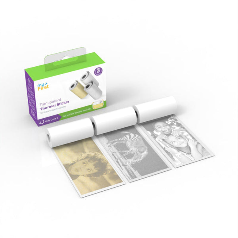 Capture every moment in shimmering detail with the myFirst Thermal Sticker for Camera Insta 2, Insta Wi - Transparent/Gold/Silver. Designed to infuse your memories with a touch of elegance, this sleek camera lets you immortalize your experiences in vibrant thermal prints. With its transparent casing, it offers a glimpse into the captivating technology within, while its compact size ensures it's always ready to accompany you on your adventures. Whether you're documenting cherished memories or exploring the world through your lens, this camera transforms every snapshot into a dazzling masterpiece, making each memory truly unforgettable. Enjoy the benefits of smooth paper surface, free end roll, sharp and dark image density, and 10 years of image durability.