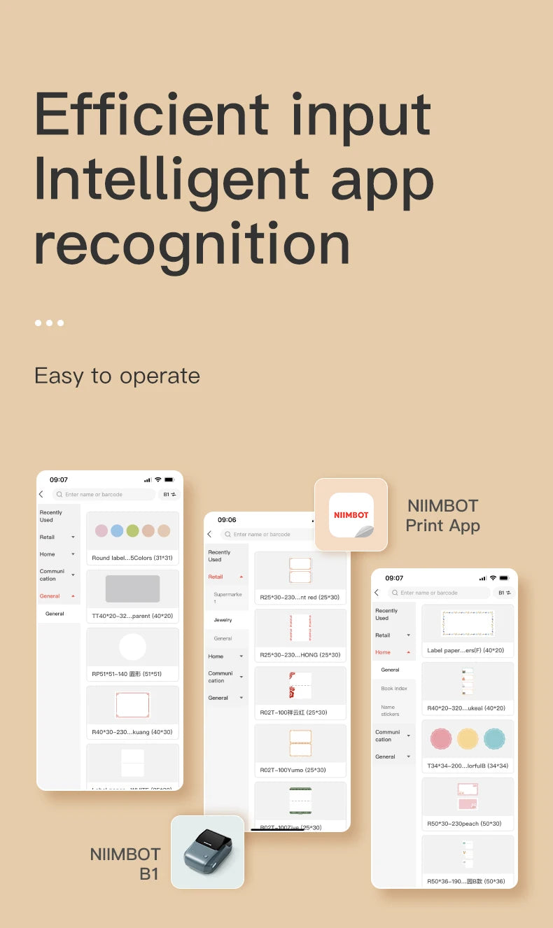 Introducing the Niimbot B1 Mini Portable Thermal Printer Self-Adhesive Sticker Label Maker Pocket Printer Labeling Machine "“ your ultimate solution for seamless labeling! This compact and versatile label maker enables you to create high-quality, customized labels effortlessly, making it perfect for home organization, small businesses, and creative projects. With its user-friendly design and Bluetooth connectivity, printing from your smartphone or tablet has never been easier. The printer supports over 30 fonts and 1500 symbols, allowing for unique labels tailored to your specific needs. Whether you're organizing your pantry, labeling gifts, or streamlining your office supplies, the Niimbot B1 simplifies your life while enhancing your creativity. Product Highlights. Compact design: Easily fits in your pocket for on-the-go use. Bluetooth connectivity: Seamlessly connects to iOS, Android, and PC devices. Long-lasting battery: 1500 mAh lithium battery provides up to 5 hours of continuous printing. Wide compatibility: Supports label widths from 0.8'' to 2'' for versatile applications. Inkless printing: Utilizes BPA-free direct thermal technology for eco-friendly labeling.