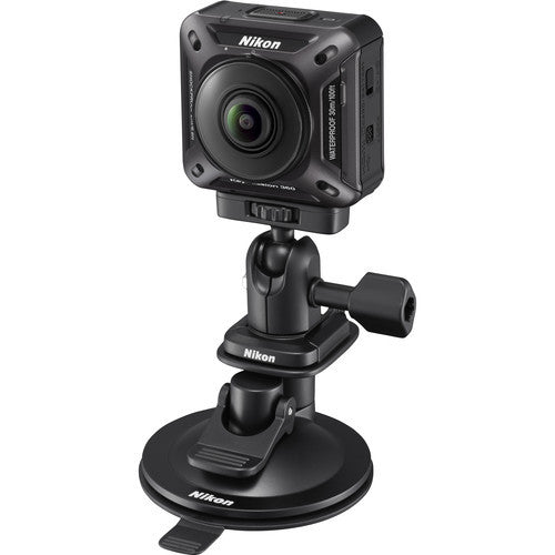 The Suction Cup Mount for KeyMission Action Cameras from Nikon features a KeyMission Base Mount as its mounting point. Base Mounts support KeyMission cameras via optional Base Adapters specific to the camera. The Suction Cup Mount can be secured to most smooth surfaces, such as car windows.