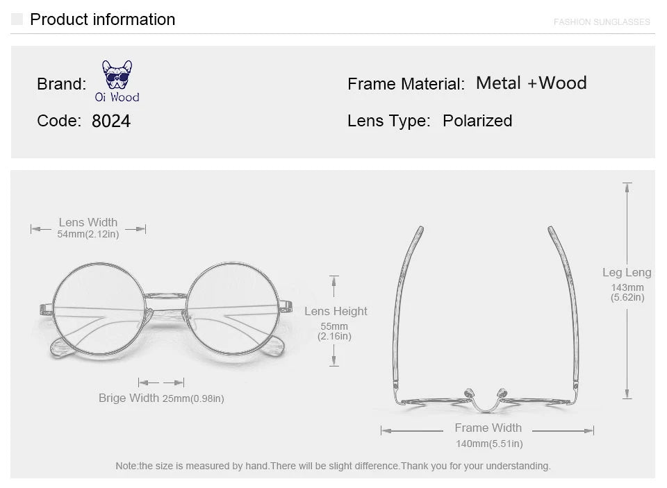 Oi Wood Retro Round Sunglasses For Men Women Polarized Blue Mirror Eyewear 8024