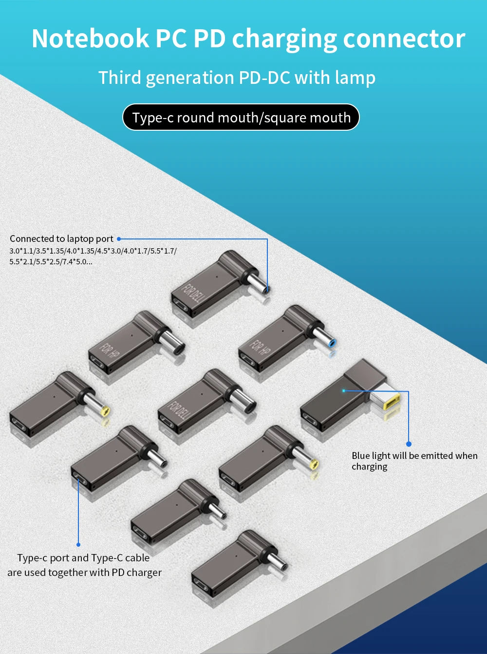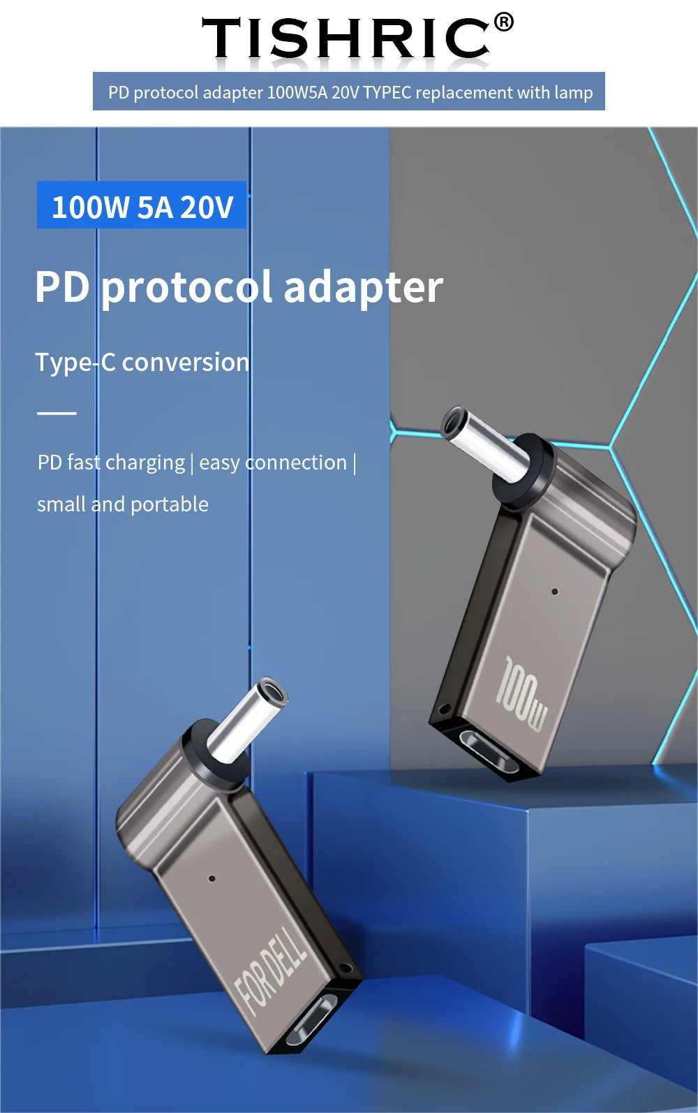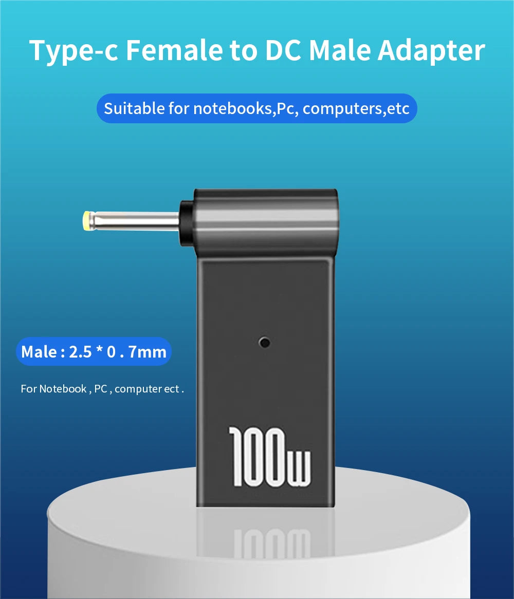The PD 100W Laptop Power Charger Supply Adapter 5A 20V Connector Female Type-C To DC Male Jack Plug Converter For Lenovo/HP/DELL is an indispensable tool for efficient laptop charging. With its impressive 100W power output, this charger ensures your devices receive a quick and safe power boost, making it ideal for students, professionals, and gamers alike. Designed for compatibility with major brands like Lenovo, HP, and Dell, this charger is perfect for on-the-go use, allowing you to power through your tasks without interruption. Built for durability and ease of use, it combines advanced smart charging technology with a lightweight design, making it a versatile accessory for anyone needing reliable laptop power.