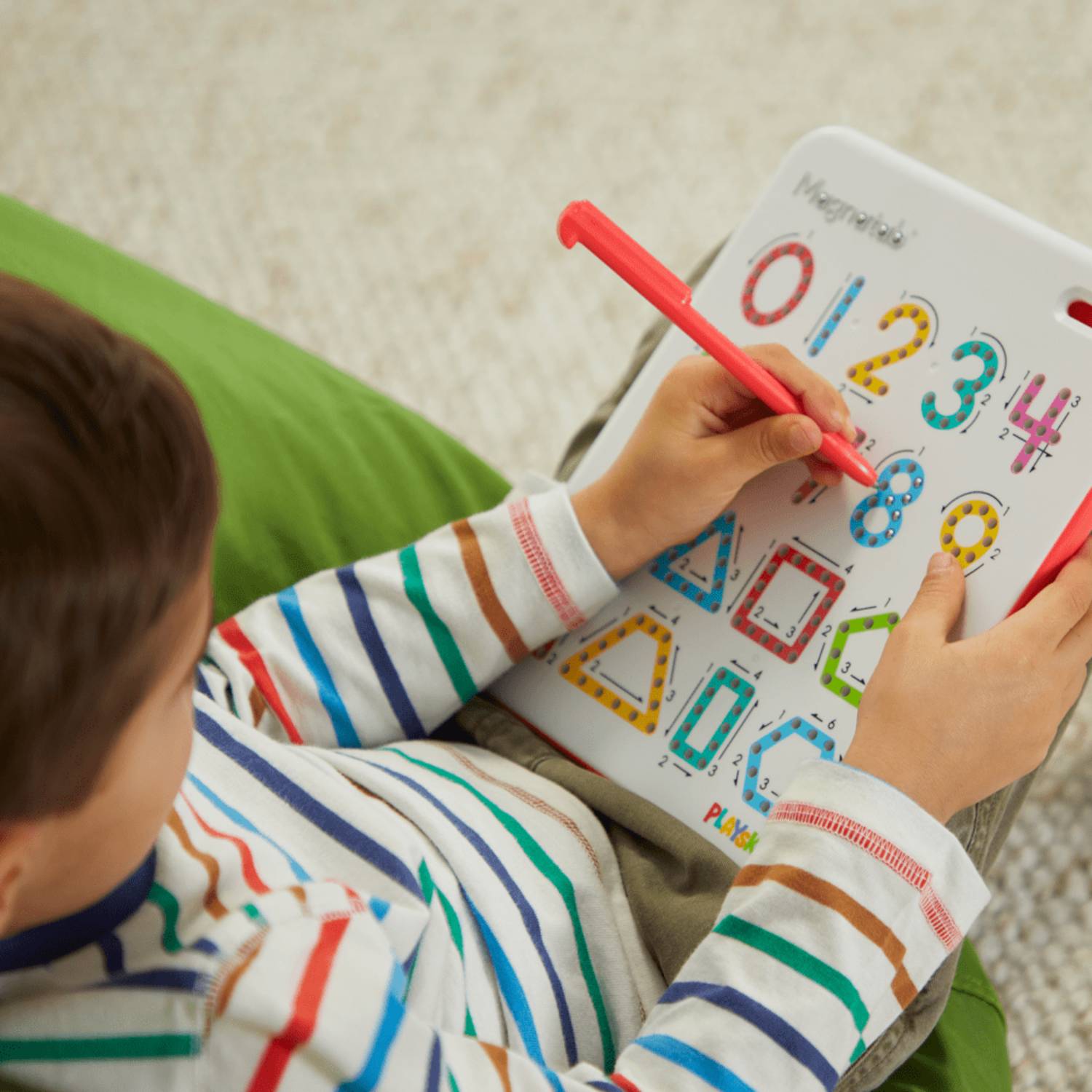 The Playskool Magnatab Numbers and Shapes is an innovative educational tool designed to make learning numbers and shapes an enjoyable adventure for children. With easy-to-follow arrows and vibrant colors, this engaging magnetic board encourages kids to explore their creativity while honing their fine motor skills. The multi-sensory engagement of the magnetic stylus allows children to practice tracing over and over, as the secured beads effortlessly pull up and push back down. Ideal for travel, the compact design makes it easy to take along on trips or errands, allowing children to play and learn anywhere, anytime!