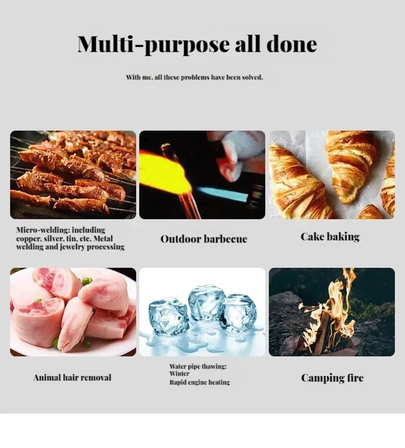 The Portable Flame Gun Multifunctional Barbecue Torch Burner is your ultimate culinary companion, meticulously designed to enhance your cooking experience, both indoors and outdoors. Whether you are grilling sumptuous meals, caramelizing desserts, or performing intricate tasks like soldering, this versatile torch is here to serve. It boasts an impressive adjustable flame temperature that reaches up to 1350 C, allowing for precise control tailored to your specific cooking needs. The ergonomic grip ensures comfort during extended use, making it perfect for passionate cooks who demand quality and efficiency in one powerful tool. With its fully automatic electronic ignition, safety and convenience are prioritized, letting you focus on getting creative in the kitchen or at the campsite. Experience unmatched reliability with its wind and moisture-resistant design, ensuring that your flame stays lit no matter the conditions. This eco-friendly tool runs seamlessly with a butane tank, ensuring uninterrupted use while you tackle a variety of cooking and heating tasks. Elevate your cooking game today with the Portable Flame Gun"βyour go-to solution for culinary adventures! Product Highlights: Adjustable flame temperature up to 1350 C, suitable for diverse cooking techniques. Ergonomic grip designed for comfortable handling during extended use. Fully automatic electronic ignition ensures safety and convenience. Wind and moisture resistant, guaranteeing reliable performance outdoors. Eco-friendly design, compatible with a butane tank for uninterrupted use.