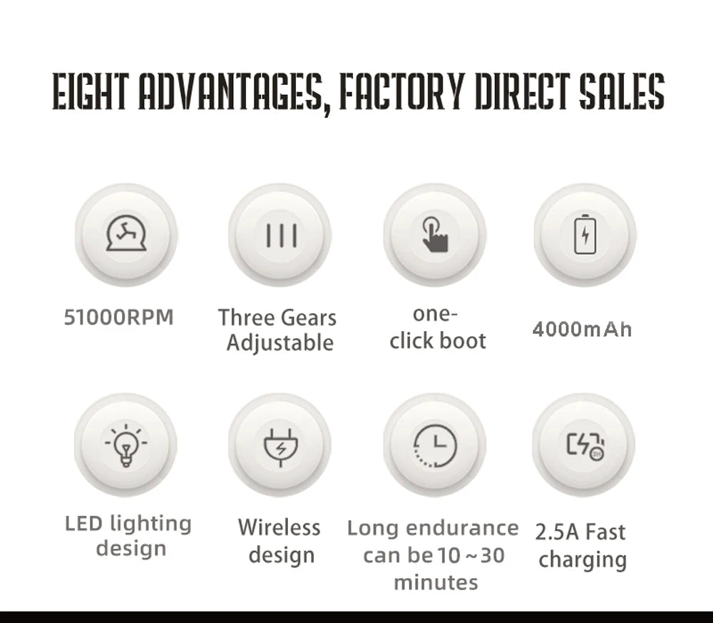 • High-speed motor with 51000 RPM for powerful cleaning.