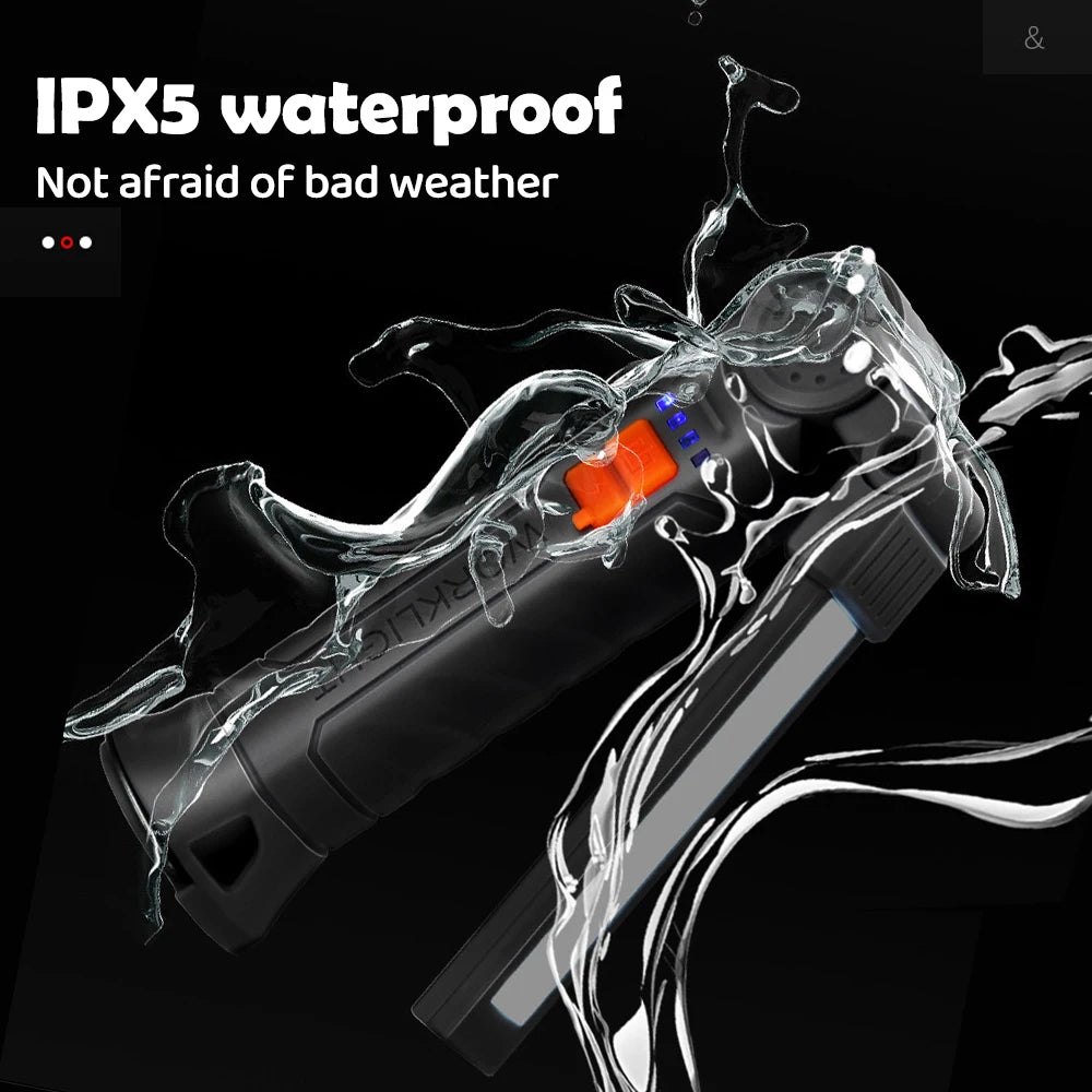 Illuminate your workspace with the Rechargeable Work Lights LED Folding Flashlight, a versatile tool designed for various applications such as car repairs, home projects, emergencies, and camping adventures. This powerful COB light delivers an impressive 450 lumens of brightness, ensuring you have reliable lighting whenever you need it. With its energy-efficient design and compact size, this flashlight is your go-to solution for hands-free convenience during any task, be it in your garage or under the stars. The innovative features, including a strong magnetic base and a rotating hook, allow you to attach the light to metal surfaces or hang it securely for optimal positioning. Don't let its compact size fool you; this flashlight packs a powerful punch and is a must-have for every toolbox or emergency kit! Product Highlights: Ultra Bright COB Work Light with 450 lumens for powerful illumination USB rechargeable built-in battery for convenient charging on the go 360 rotating magnetic base for flexible positioning and hands-free use Lightweight and portable, perfect for car repairs, camping, and emergencies Durable ABS material ensures longevity and resistance to wear and tear