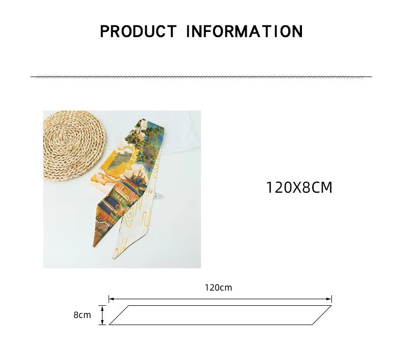 The Retro Print Long Skinny Neckerchief Women Hair Scarfs Fashion Summer Headbands Neck Scarf Wrist Ribbon Bag Scarves For Women is the essential accessory for the fashion-forward woman. Crafted from high-quality polyester, this neckerchief showcases a captivating retro print that effortlessly enhances any outfit. It is not just a scarf; it is a versatile fashion statement that can elevate your summer look, keep your hair in check on breezy days, or add an eye-catching flair to your bag. Designed for comfort and style, this lightweight and breathable fabric makes it suitable for year-round wear. With its flexible design, you can easily transform it into a chic hairband, trendy wrist ribbon, or vibrant bag accessory, allowing you to express your unique fashion sense in countless ways.