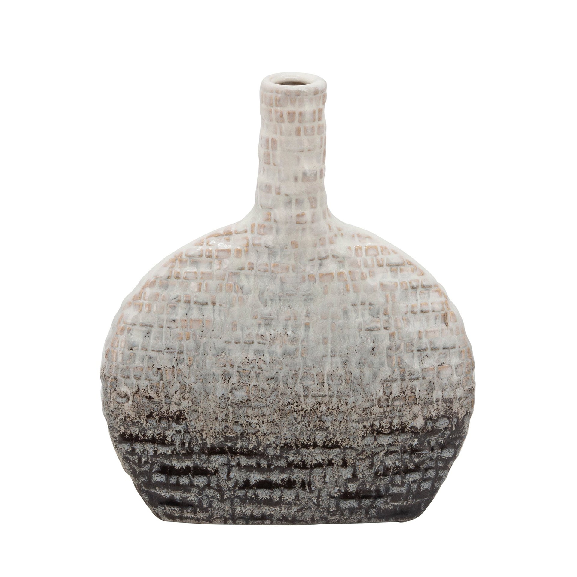 Sagebrook Home Contemporary 10" Textured Oval 2-Tone Ceramic Vase - Ivory/Beige