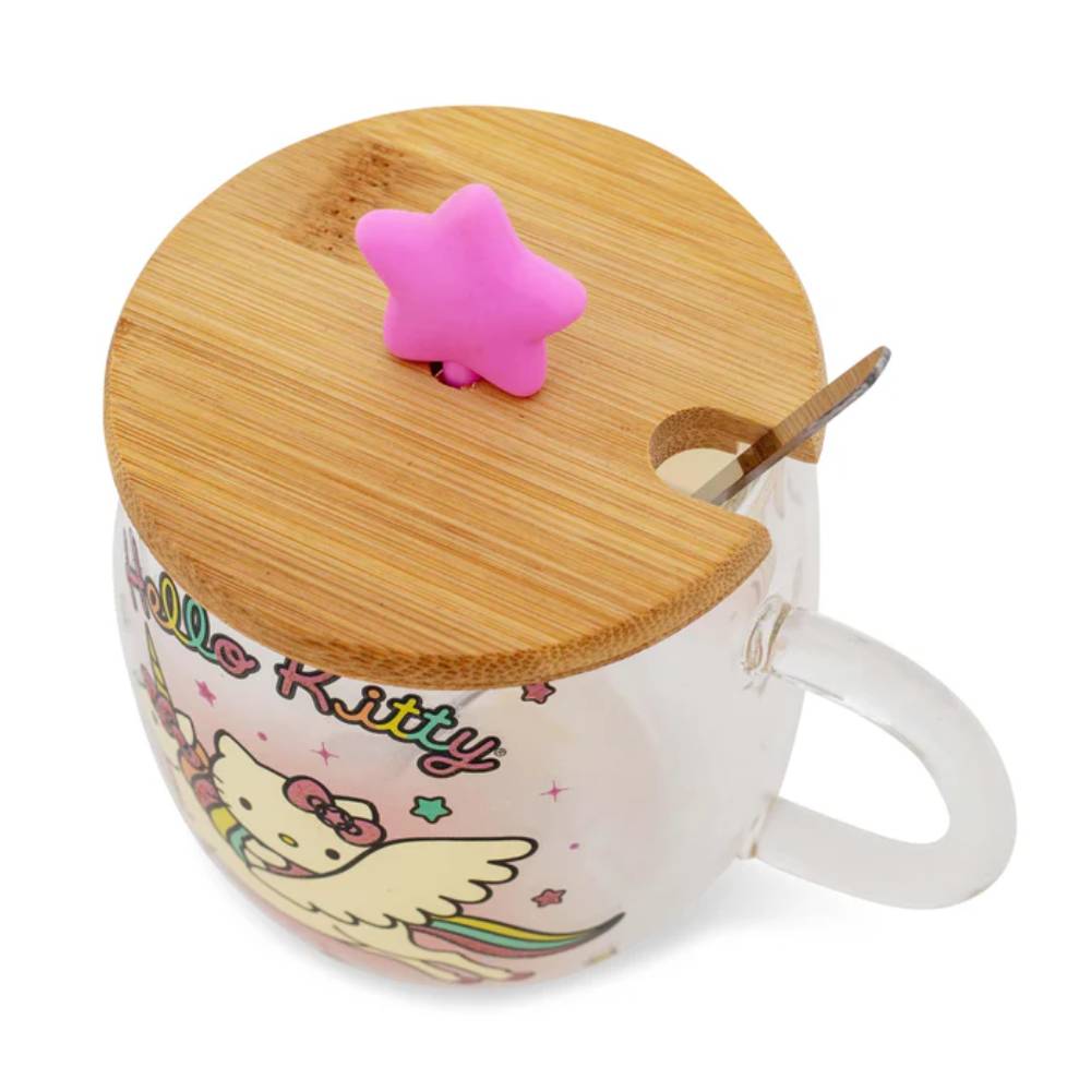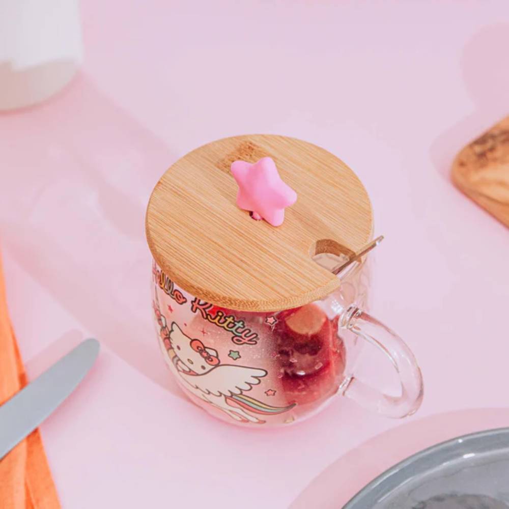 Sanrio Hello Kitty 17 oz Glass Mug With Star Topper Lid and Spoon - Multicolor